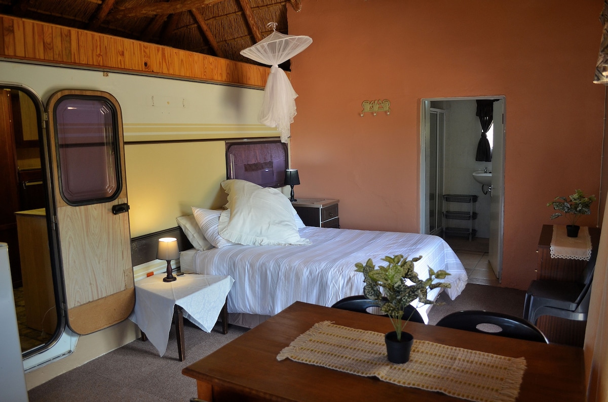 Namibia's first off the grid Tiny House and Gypsy Wagon- ideal to experience this new life stile in mid of African bush and wildlife. Enjoy the sounds of nature in this unique place. This is a great and peaceful home to stay if you arrive to or depart from Namibia. Close to Airport and city, game viewing, kayaking and hiking are to explore. Need some time-out from the city? Let Bellacus welcome you to a few relaxing, stress-free days on the farm in our high quality self catering BellaTiny.