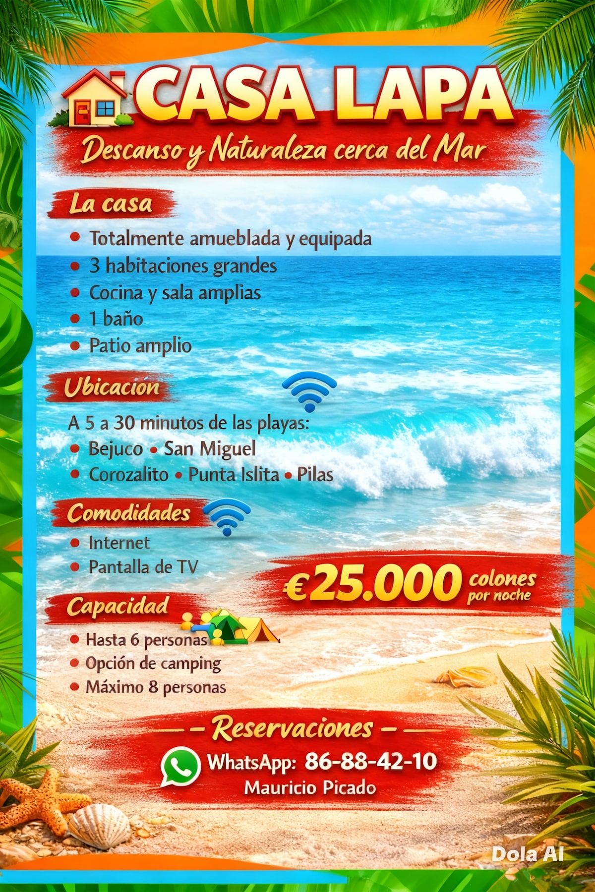 Nestled along the sun-kissed shoreline of Costa Rica's Nicoya Peninsula, our beachfront house beckons you to indulge in the beauty and serenity of coastal living. Whether you're seeking a romantic getaway, a family vacation, or a memorable adventure with friends, our Eco Tesoro ((eco treasure)) in Playa San Miguel, Guanacaste offers an unparalleled experience. Immerse yourself in the natural beauty of this tropical paradise, and let the soothing sounds of the ocean lull you to sleep each night.
