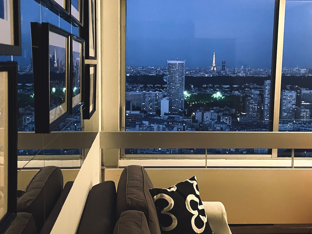 Harika Eyfel Kulesi manzaralı sevimli Paris stüdyosu