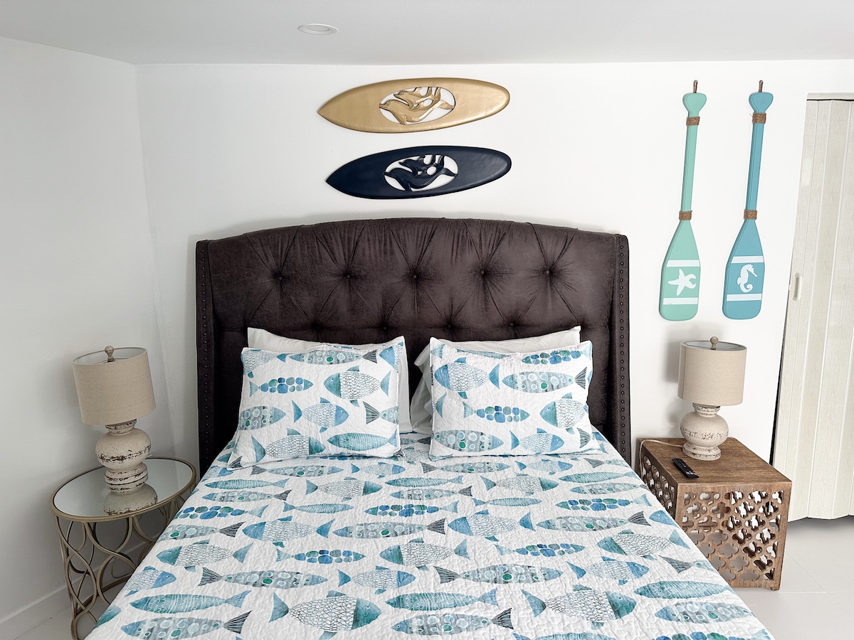 Bu ferah ve dingin mekânda endişelerinizi unutun. Burası özel girişi olan eksiksiz bir stüdyo dairedir. Açık hava oturma alanı Netflix, Disney+ ile akıllı TV Lüks şilteli queen boy yatak Dolap ve şifonyer Tam makyaj masalı fayanslı duş Banyo olanakları ve saç kurutma makinesi dahil. Buzdolabı ve donduruculu küçük mutfak Ücretsiz kahve ile Keurig İndüksiyonlu ocak Mikrodalga fırın Mini fırın/air fryer Çamaşır yıkama/kurutma makinesi Plaj havluları, sandalyeler, şemsiye 1 araç için park yeri Plaja, mağazalara, yemek yeme yerlerine kısa sürüş mesafesinde.