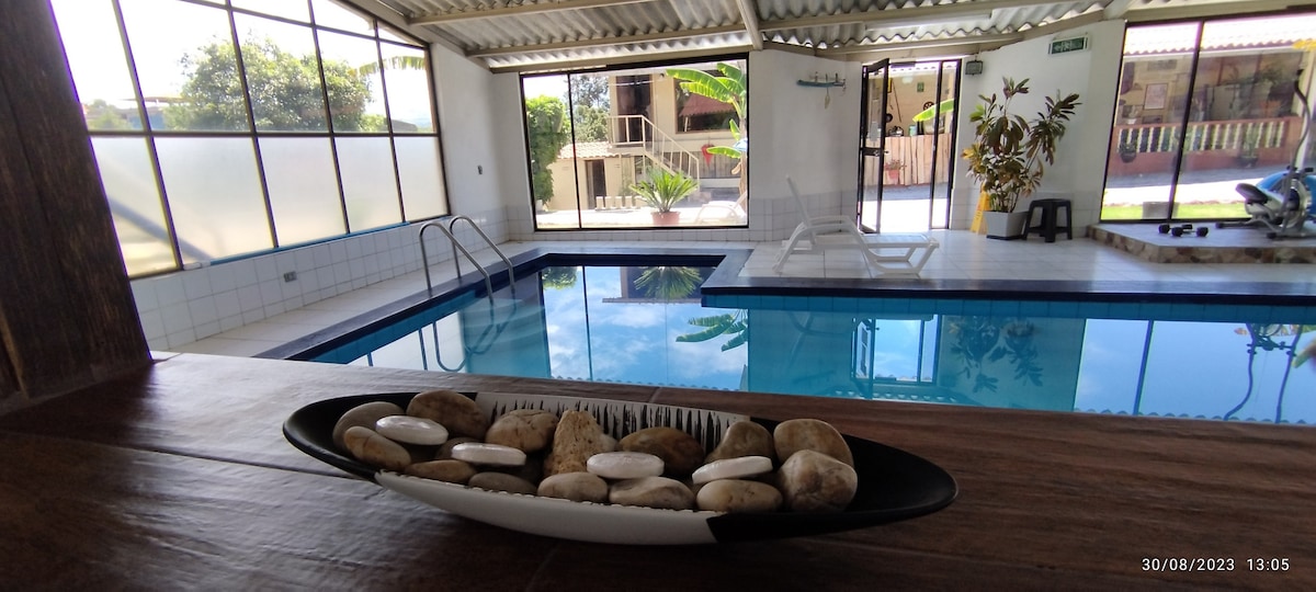 Doğa ile çevrili ve rahatlatıcı bir manzaraya sahip özel ve bağımsız süit, havaalanına 20 dakika mesafededir. Dinlenmek, mahremiyet ve şehre kolay erişim arayan çiftler veya seyahatseverler için idealdir. Şunlara sahiptir: - Parqueadero gratuito - Premium yatak takımları ve koyu perdeleri olan çift kişilik yatak - Donanımlı mutfak. - Sıcak su bulunan özel banyo - Hızlı kablosuz internet bağlantısı. - Akıllı TV. - Filtre kahve ve şeker Muhteşem hava koşullarıyla sessiz ve güvenli bir atmosferde bahçenin ve kamp ateşi alanının keyfini çıkarın.