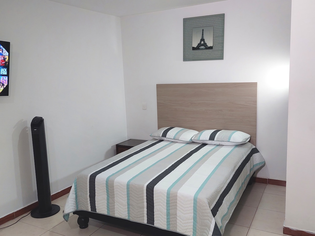 Cali'nin güneyinde, üniversitelere, alışveriş merkezlerine, kliniklere, ana yollara, Calle 5'e ve güney otoyoluna yakın bir konumda bulunan bu konaklama yerinde şık bir deneyimin tadını çıkarın. Edificio yüzme havuzu, jakuzi, otopark, ortak çalışma alanı gibi olanaklar sunar. 35 m2 daire, barlı açık mutfak, queen yataklı ve klimalı ana yatak odası, giyinme odası, çamaşır alanı, 55 inç TV'li oturma odası, çekyat, banyo. Konaklama Maks. 3 kişi, 2'si queen boy yatakta ve 1'i çekyatta.