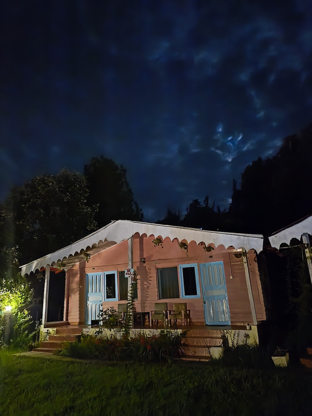 Kulübe, Corbett yakınlarındaki Himalayalar'da yer alıyor ve Nanda Devi sıradağlarının güzel bir manzarasına sahip. Bir sırt ve yoğun Oak, Rhododendron ormanı ile fısıldayan Pines arasında yer alıyor. Doğada dinlenmek ve gençleşmek için ideal bir yer. Kuş gözlemcileri gündüzleri keyif alır ve geceler o kadar sessizdir ki evin yanındaki ormandan Havlayan Geyik'in çağrılarını duyabilirsiniz. Samanyolu'na dikkat edin, gökyüzü bulanık olmadığında görünür yıldız takımyıldızları.