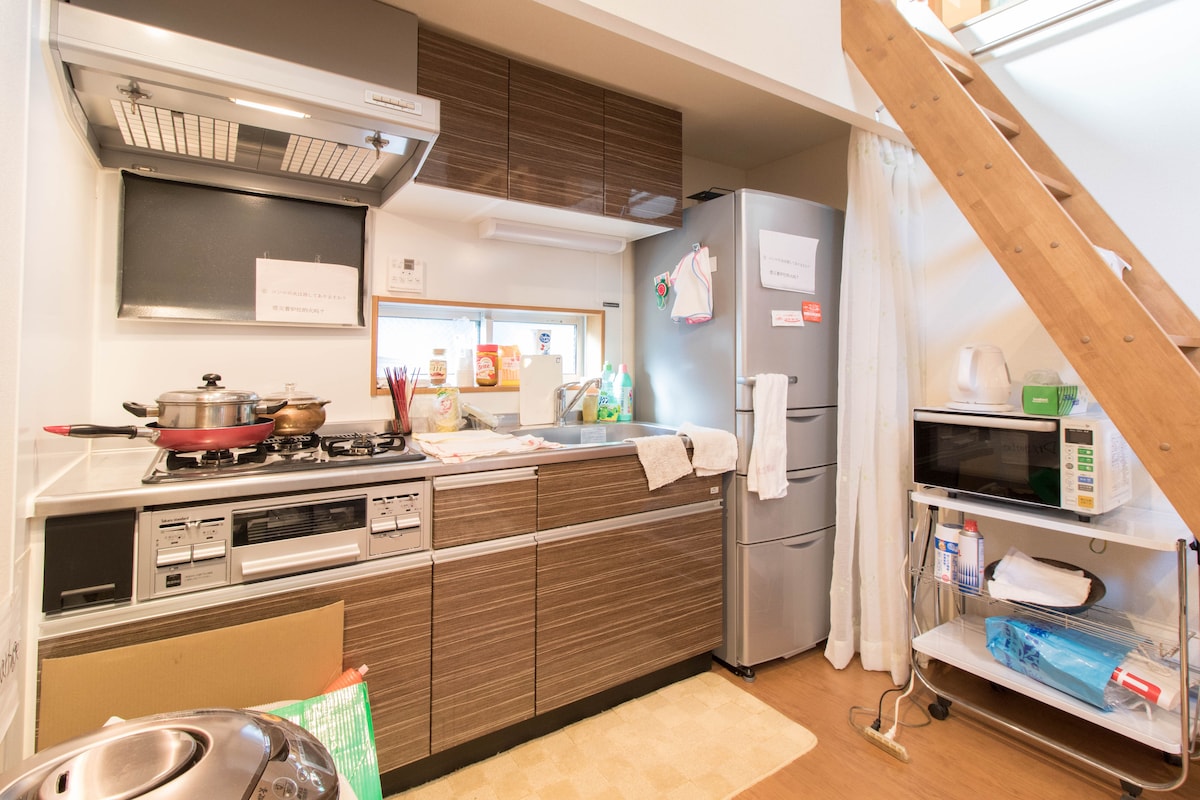"Konohana" Misafir Evi ・Özel ferah daire (100 m²) Tatami odası (şilte yataklar), çekyat, 2 tek kişilik yatak - 7 kişiye kadar barındırabilir. ・Engelsiz odalar, tekerlekli sandalye için kolay erişim. Aile ve büyük bir grup için mükemmeldir. ・Seven-Eleven (bakkal) misafirhanenin önündedir, Hotto Motto (Bento paket servis mağazası) yan taraftadır. Buralarda birçok restoran, bar ve süpermarket vardır, süpermarketler akşam geç saatlere kadar açıktır. ・Mutfak gereçleri mevcuttur, uzun süreli konaklama için uygundur.