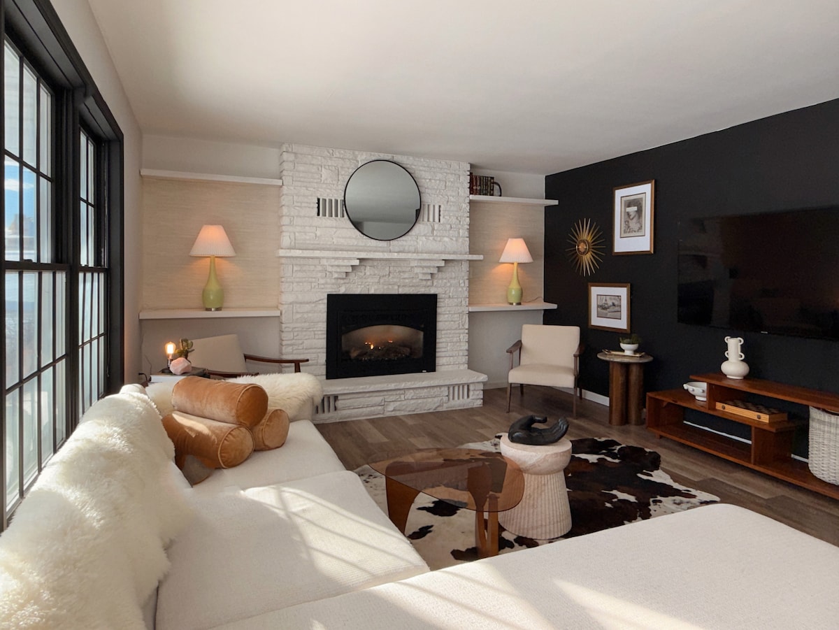 6 dönümlük özel arazide jakuzili ve şömineli modern 3 yatak odalı/2 banyolu Catskills inzivası. Bir tepeye kurulmuş bu tek katlı ev, huzur, manzaralı görünümler, yüzyıl ortası modern dekor ve konfor sunuyor. Kız arkadaş grupları, çiftler ve aileler için ideal. Olanaklar: Şömine Jakuzi Spa Mini Ping-Pong Dart Tahtası Yüksek hızlı kablosuz internet bağlantısı Narrowsburg'un sundukları: - Restoranlar ve dükkanlar. - Lüks kaplıcalar ve yoga - Alpaka Çiftliği - Yürüyüş - Farmer's Markets - Delaware Valley Arts Alliance Catskills'in en iyi yönlerini yaşayın!