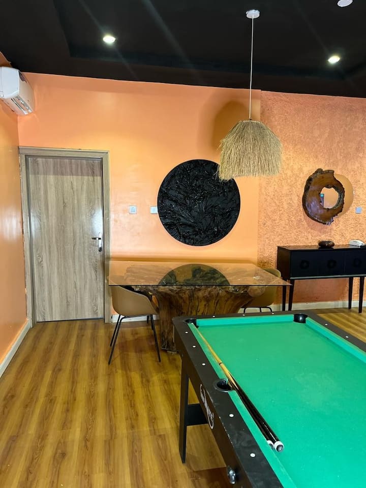 Güncellenmiş Wi-Fi (STARLINK), güneş enerjili su ısıtıcısı, PS5, havalimanından alma/bırakma, ücret karşılığında günlük şoför hizmetleri. (Misafir şikayetleri üzerine iyileştirmeler yaptık!) Abj'nin tüm bölümlerine kolay erişimi olan sakin, güvenli, kapalı bir sitede yer alıyor. Sessiz, benzersiz, şık ve zarif mobilyalarla sade bir ev. Güneş enerjisi/invertör sistemleri, gaz/yakıtlı jeneratörler, vantilatör, tam donanımlı modern mutfak, silahlı güvenlik ile 7/24 elektrik kombinasyonu. Bilardo masası, dinlenme salıncağı, yüzme havuzu ve çamaşır makinesi