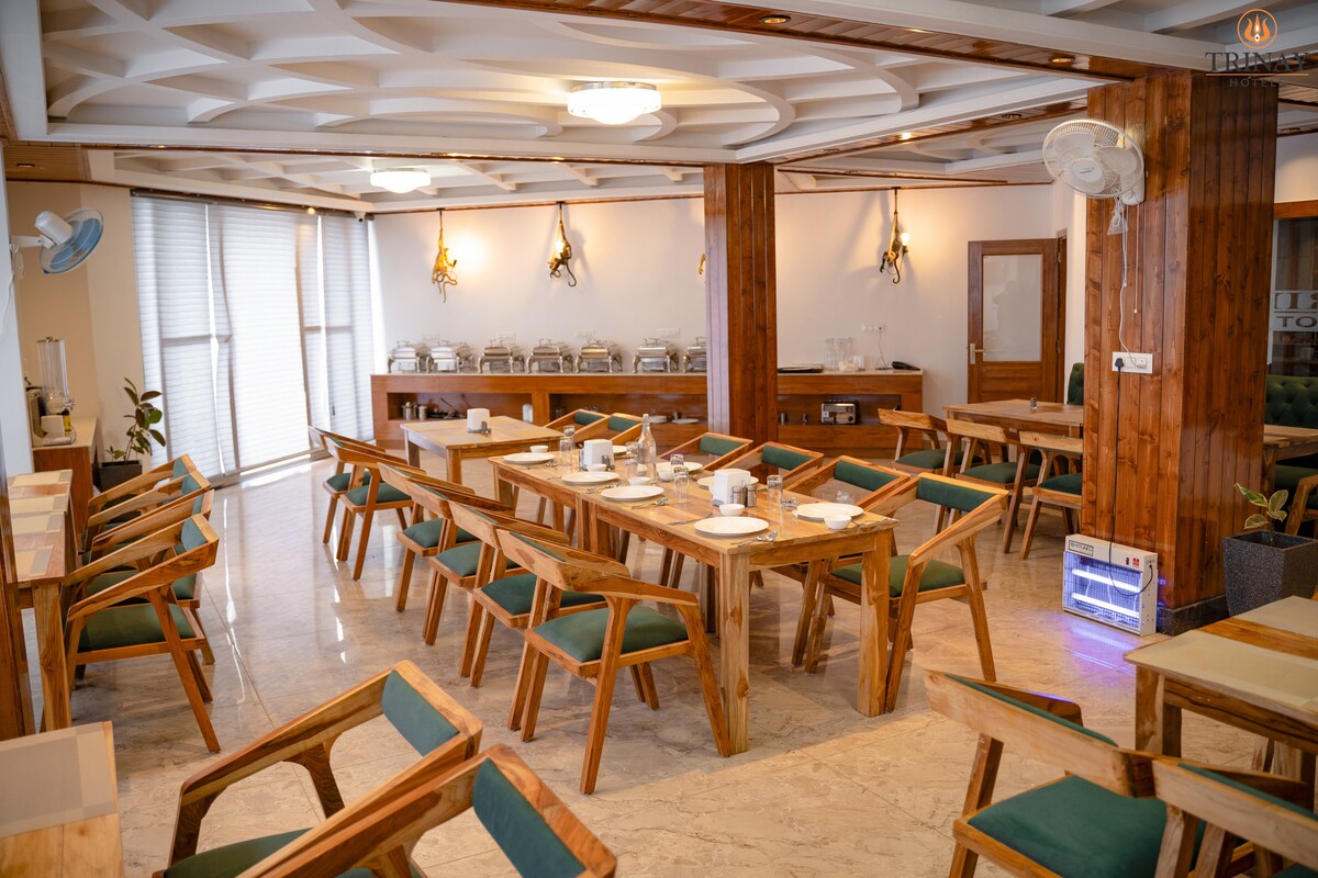 Escape the everyday at “The White Season Resort by “Trinay Hotels.” Tucked away in the serene hills of Shuru, Manali, this 3-star luxury hotel offers an affordable mountain retreat with stunning views. Unwind in a spacious room and take in the panoramic Himalayas from your private balcony. With amenities like free Wi-Fi and 24/7 hot water, it’s the perfect charming base for couples, families, and groups.