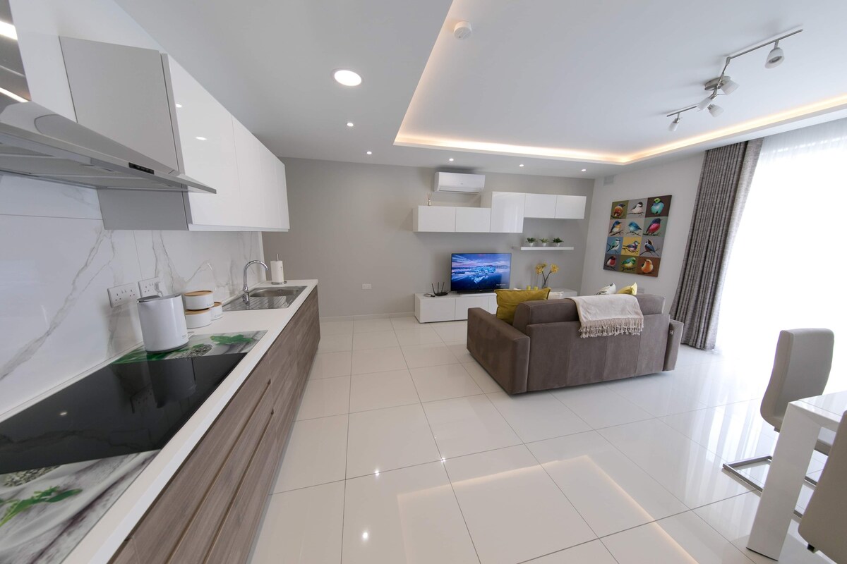 Orion Court Flat 4D. Malta'ya güzel bir romantik kaçamak. Tamamen donanımlı, çarpıcı, yepyeni bir tek yatak odalı daire. Tamamen klimalı ve çamaşır makinesi. Bulaşık makinesi, mikrodalga fırın ve kahve makinesi ile tam donanımlı mutfak. 50 inç Android TV ve kablosuz internet bağlantısı bulunan sansasyonel bir oturma odası. Koltukları ve masası olan güzel bir balkonu vardır.
