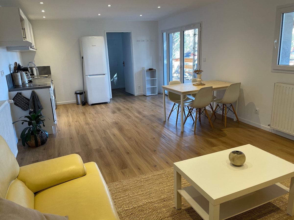 Tallard'da, sakin bir yerleşim alanında, 1 yatak odası, 1 banyo ve masa ve barbekü ile bahçeye bakan bir mutfak salonu içeren 30m2'lik yeni konut. Sessiz ve dinlendirici bir yer. 1 ila 4 kişilik konut. Bebekler ve çocuklar için gerekli olan her şeyi sağlayabiliriz. Tallard'ın tüm olanaklarına yakın, Intermarché ve havaalanına 7 dakika yürüme ve 3 dakika araba mesafesinde. Gap'a 15 dakika. Temiz ve sakin evcil hayvanları kabul ediyoruz.