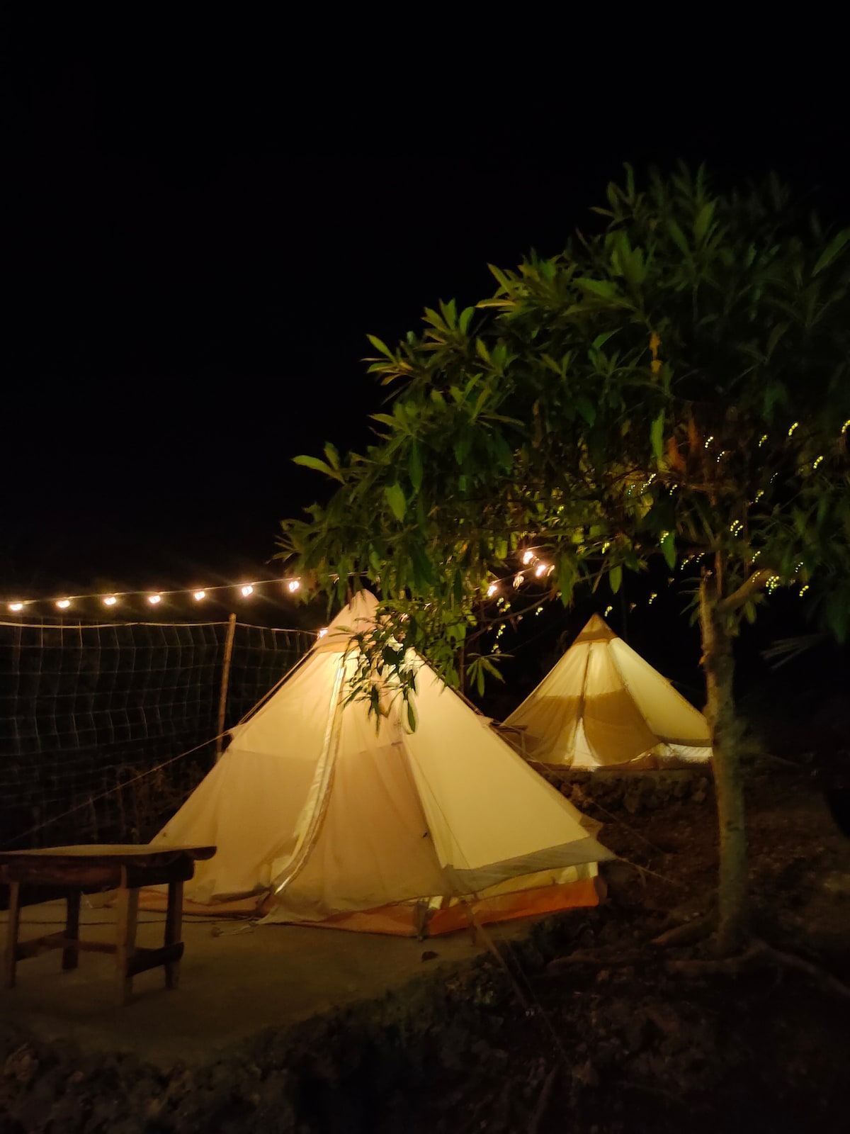 Ahşap bir güverte üzerine kurulmuş, üstü branda çatılı, güzel tasarlanmış glamping çan çadırlarımızda doğa ve konforun mükemmel birleşimini yaşayın. Dağ yamacının biraz yukarısında yer alan inzivamız, sizi ünlü balina köpekbalığı deneyimi de dahil olmak üzere Oslob'un en gözde cazibe merkezlerine yakın tutarken çarpıcı panoramik okyanus manzaraları sunuyor!