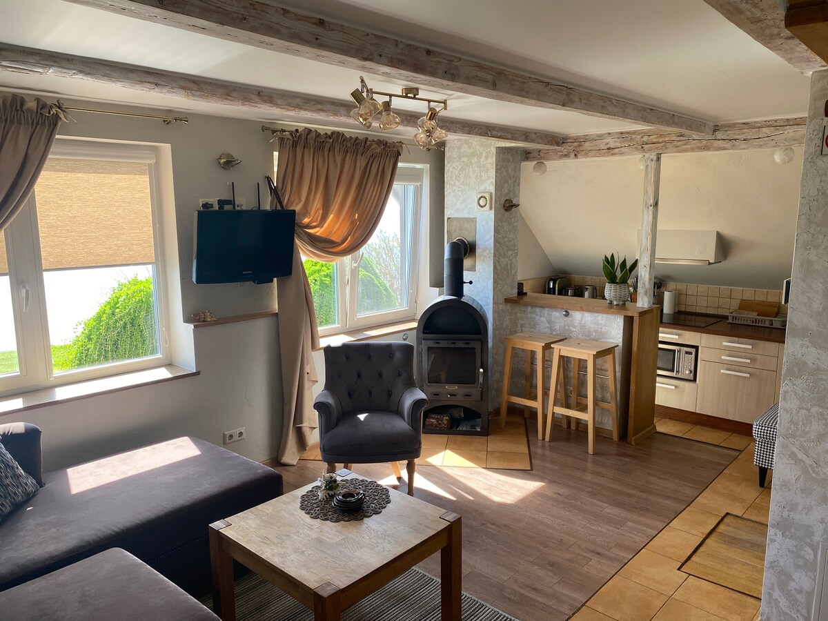 Denizin hemen yanında yer alan Preila'daki bu rahat daire, doğanın çevresinde sessiz bir dinlenme için idealdir. Ferah: Kombine mutfak sizi yemek pişirmenin keyfini çıkarmaya davet ederken, şömineli rahat oturma odası daha serin akşamlar için özel bir rahatlık sağlar. Panoramik pencereler bol miktarda doğal ışık alır ve iç mekânı doğayla birleştiriyormuş gibi çevrenin rahatlatıcı manzarasının keyfini çıkarmanızı sağlar. Deniz kenarında tatil yaparken benzersiz detaylar, konfor ve özel bir huzur duygusu arayanlar için mükemmel bir yerdir.