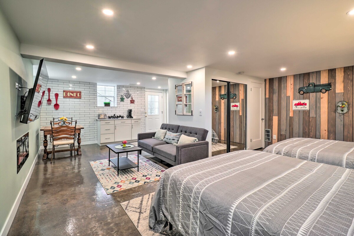 Bu 1 banyolu kiralık stüdyo dairenin konforunda Reno'nun en iyi yönlerini deneyimleyin! Merkezi konumuyla, bu yenilenmiş ve evcil hayvan dostu stüdyo, küçük bir mutfak, yemek alanı, huzurlu bir veranda ve akıllı TV ve elektrikli şömineli rahat bir yaşam alanına sahiptir. Kayaklarınızı toplayın ve yakındaki Tahoe kayak merkezinde yamaçlarda bir günün tadını çıkarın. Farklı festivaller ve etkinlikler için Riverwalk Bölgesi'ne veya alışveriş ve yemek için Midtown Bölgesi'ne gidin, her ikisi de bir milden daha yakın!