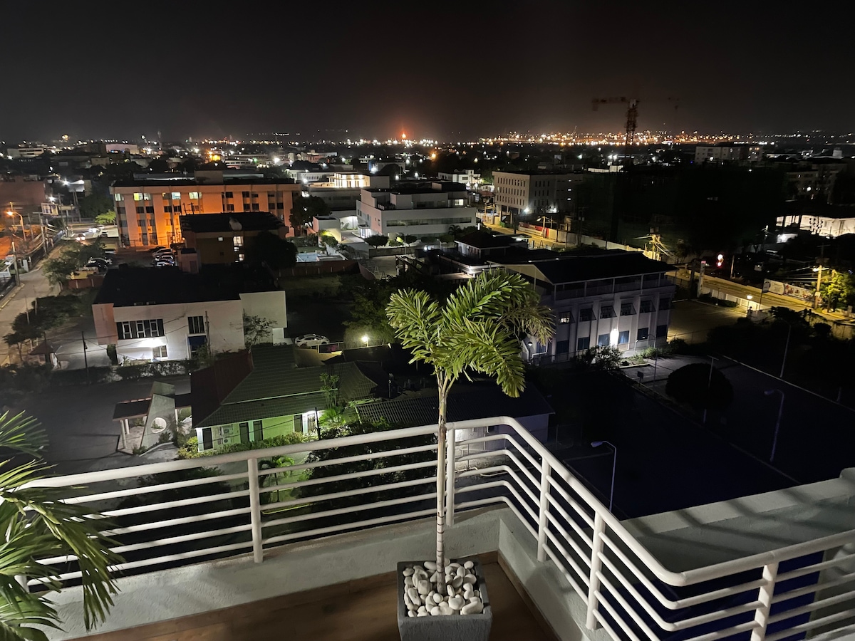 New Kingston'da bulunan, St. Andrews'un muhteşem manzarasına sahip, lüks iki yatak odalı, 2 1/2 banyolu çatı katı. Stadyum, AC Hotel Kingston ve Norman Manley Uluslararası Havalimanı'na birkaç dakika mesafededir. Yeni inşa edilen alan, şehrin göbeğinde yer alıyor ve birinci sınıf eğlence seçenekleri sunuyor. Olanaklar arasında koşu parkuru ve sonsuzluk havuzu bulunan çatı katında açık bir fitness merkezi bulunmaktadır. En üst kattaki süitte özel bir balkon var. Uzun süreli konaklamalar için çamaşırhane alanı mevcuttur (5 gün veya daha fazla).