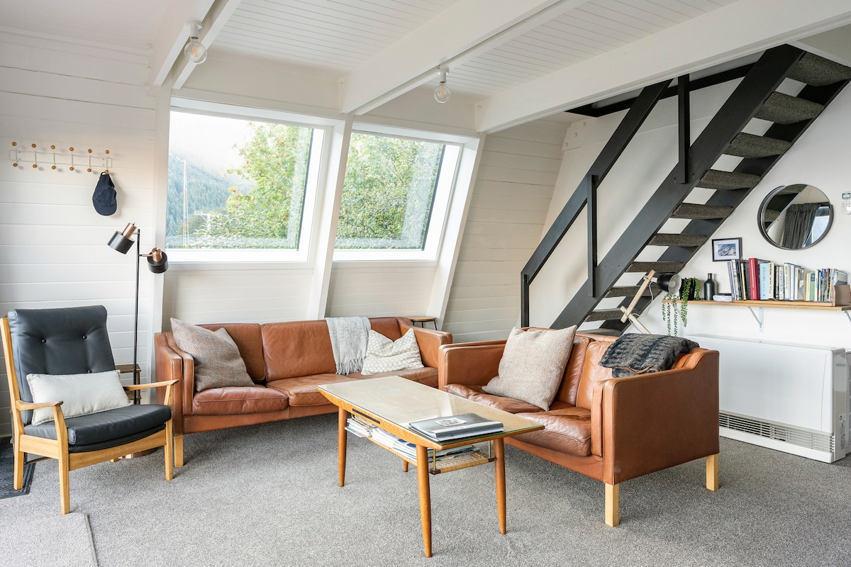 Tarihi bir geçmişi olan çok şirin bir retro üçgen ev. Burası Queenstown'dayken Hillary ailesinin üssü. Sör Edmund'un 1953'te Everest Dağı'na yaptığı tarihi tırmanıştan ilk döndüğünde çekilmiş bir resmi bile var. Yakın zamanda yenilenmiş, yeni bir mutfak ve banyo ile sevimli, konforlu ve ön balkon, yaşam alanı ve ana yatak odasından muhteşem manzaralara sahiptir. Queenstown'ın merkezindeki mağazalara ve restoranlara yürüyün. Evde bolca park yeri var.