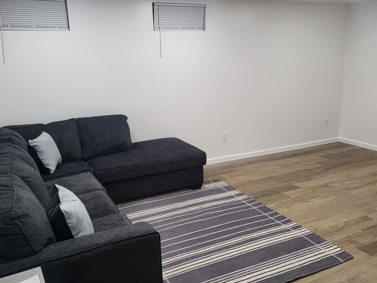 Kitty's Place'e hoş geldiniz! Burası, mutfakta bol miktarda doğal ışık bulunan, bodrumda olduğunu hissettirmeyen, yepyeni inşa edilmiş 2 yatak odalı bir bodrum dairesidir. Akıllı kilitli özel bir giriş vardır. Gazlı ocak, 3 kişilik kahvaltı barı, gömme mikrodalga fırın, bulaşık makinesi, özel çamaşırhane ve büyük cam duşlu muhteşem banyosu olan büyük modern mutfak ile çok açık bir alan.