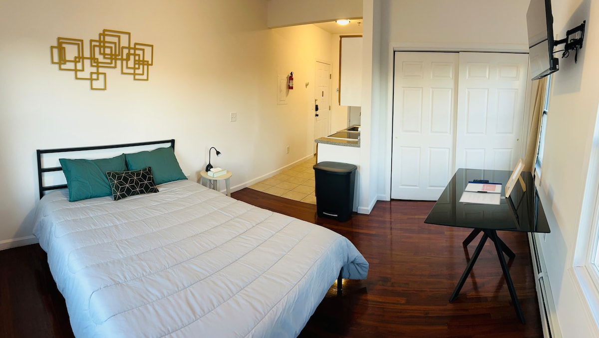 Çiftler için mükemmel olan küçük, akıllı stüdyomuzu keşfedin! Newark Penn İstasyonu, New York City, Hoboken ve EWR Havaalanı yakınında yer alan bu samimi mekân, rahatlığı cazibeyle harmanlıyor. Rahat bir yatağı, küçük mutfağı ve şık bir banyosu vardır. Semti keşfedin veya şehre giden bir trene binin. İster şehir tatili ister kısa bir mola için olsun, stüdyomuz keyifli bir konaklama sağlar. Rezervasyon yapmadan önce ev kurallarını 🔹 gözden geçirin. 🚫 Sigara içmek yasaktır /Parti yapmak yasaktır. **Otopark :** Misafirler kendi park yerlerini bulmalıdır.