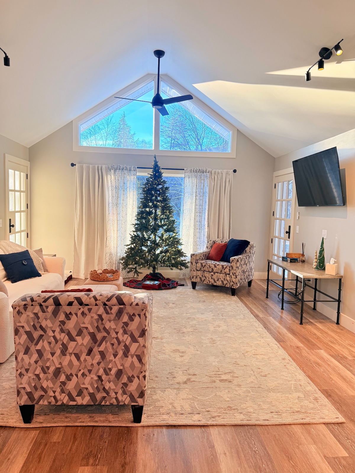 Tarihi evin arkasındaki güzel, rahat, iki katlı direk ve kirişli özel daire, oturma odasında ve ana yatak odasında, özel ormana ve ahıra bakan büyük güney pozlama pencerelerinin yanı sıra özel veranda girişine de sahiptir. I -93 'ten bir mil uzakta. Newfound Lake, Bristol, Meredith, Lake Winnipesaukee, Plymouth, Ragged Mtn. Tatil köyü. Oturma odasındaki TV'de Netflix ve Sling var. Mekânda sigara içmek veya elektronik sigara içmek yasaktır. Açık alev sadece bina yapısından uzakta.