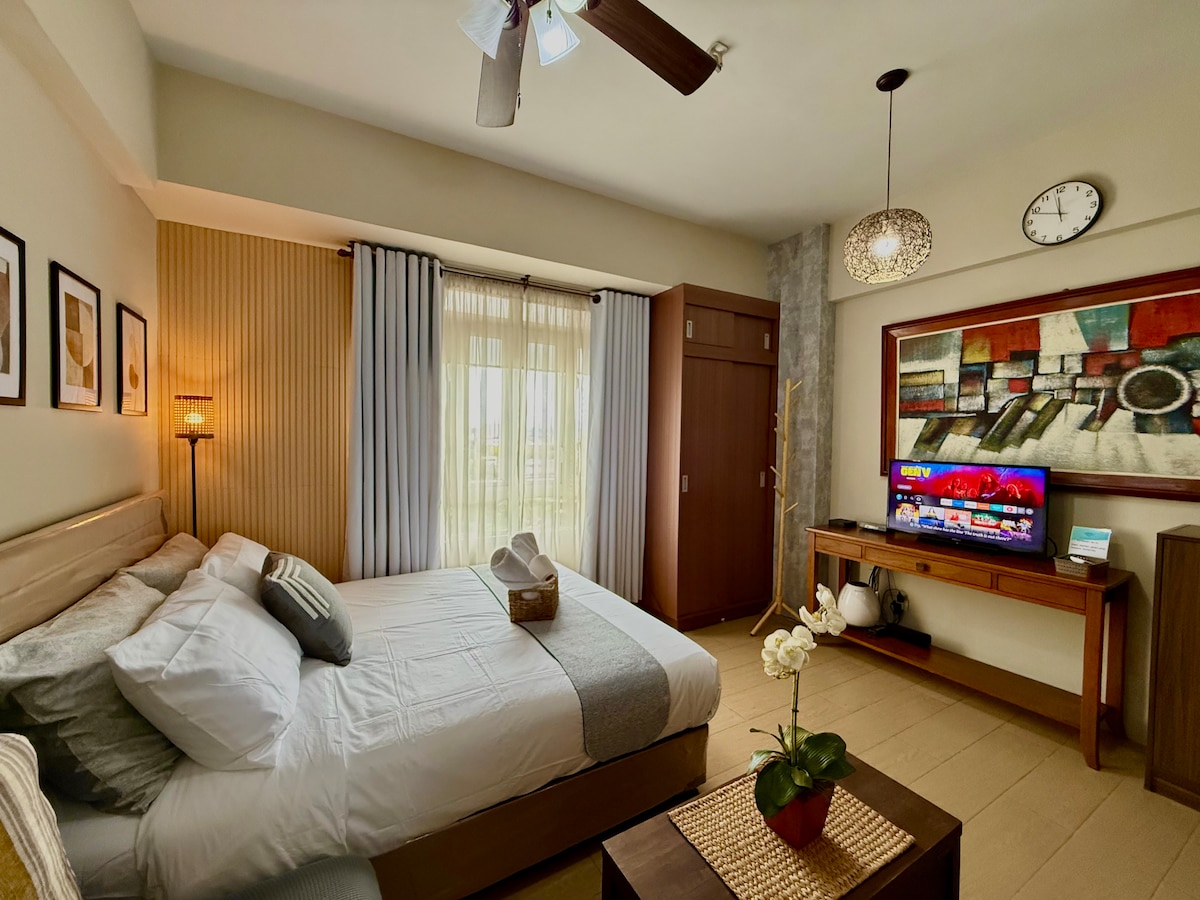 For business or holiday travelers looking for an alternative to hotel but still with a top-class hotel feel. The studio is located just across NAIA Terminal 3 and can be reached by a short walk from the airport, partly through an air-conditioned footbridge. Within short walking distance from the studio, you will find restaurants, shopping, service, casinos and bars with live music entertainment. As a guest, you'll have free access to a large outdoor pool, a 55'' Smart TV and Wi-Fi 100 Mbps.