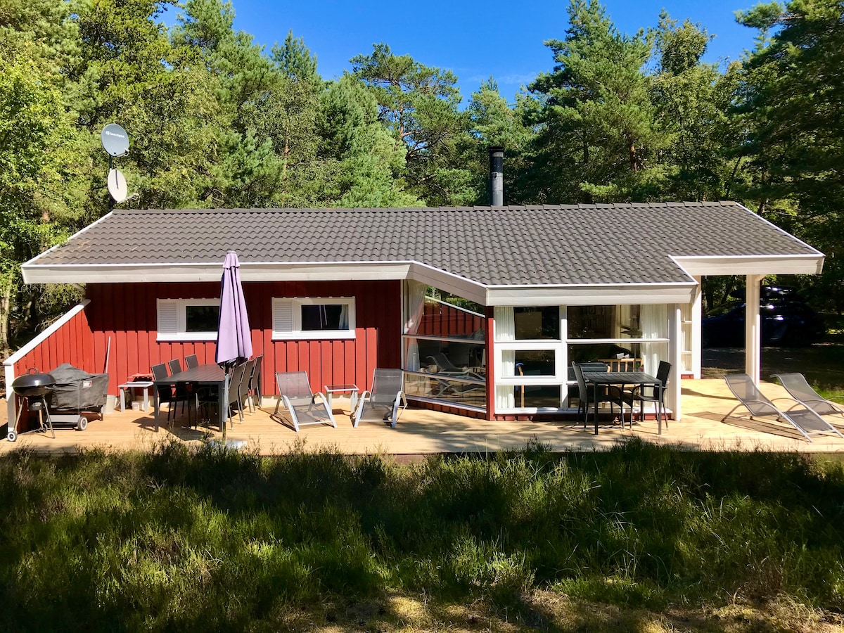 Dueodde plajına yakın güzel bir kulübe. Bu lüks kır evi, kaliteli mobilyalara sahip güzel, aydınlık bir oturma odası, açık bir mutfak ve yemek odasının yanı sıra üç yatak odası ve bir çatı katı da dahil olmak üzere tüm olanakları içerir. Son olarak, güzel bir sauna, spa ve orman manzarasına sahip güzel bir banyo bulacaksınız. 2022 'de yeni bir ahşap veranda inşa edildi ve çocuklar için bir trambolina kuruldu Konaklama sırasında elektrik, su tüketimi dahilken Kwh başına 4 kr olarak ücretlendirilecektir.