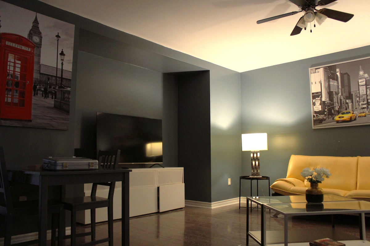 Şelaleler ve Şarap Ülkesi arasında. Sessiz bir semt, her şeye yakın! Müstakil ünite-stüdyo, yeni yenilenmiş alan. Bir queen boy yatak + bir çekyat, tam mutfak. Bölgeyi keşfedin. Göl kenarındaki Niagara'nın merkezi (şarap bölgesi), Clifton Hill, kumarhaneler, su parkları, outlet alışveriş merkezi/alışveriş, yürüyüş, bisiklet parkurları. Niagara Gorge, Whirlpool Golf + çok daha fazlası! (Haritalar daha fazla ayrıntı gösterir) Şehir içi otobüs durağı 100 metre önünüzdedir. Go tren istasyonu 15 dakika yürüme mesafesinde/arabayla 2 dakika. Bir park yeri.