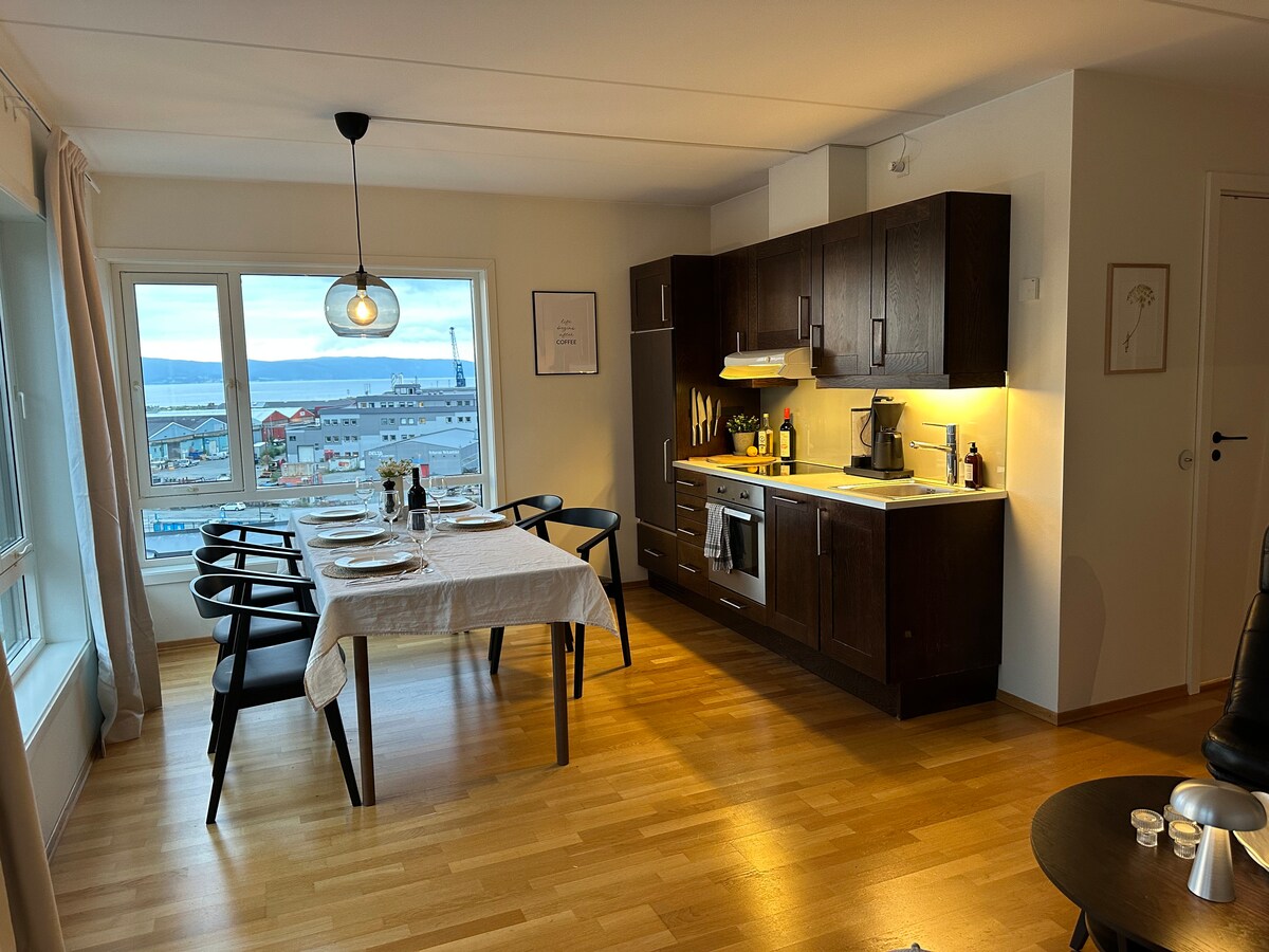 Solsiden Alışveriş Merkezi, havaalanı otobüsü ve toplu taşıma araçlarına sadece 2 dakika yürüme mesafesinde, Møllenberg'in keyifli bir bölgesinde bulunan 104 m²'lik yeni yenilenmiş bir daireye hoş geldiniz. Daire, modern çözümleri sıva ve iyi tavan yüksekliği gibi klasik detaylarla birleştiriyor. Burada merkezi bir yerde yaşıyorsunuz, ancak şehir gürültüsünden korunuyorsunuz. Daire hem özel konaklamalar hem iş seyahatleri hem de daha uzun ziyaretler için uygundur. Oturma odası ve mutfak arasındaki açık çözüm, yemek pişirme ve sosyal toplantılar için uygundur.
