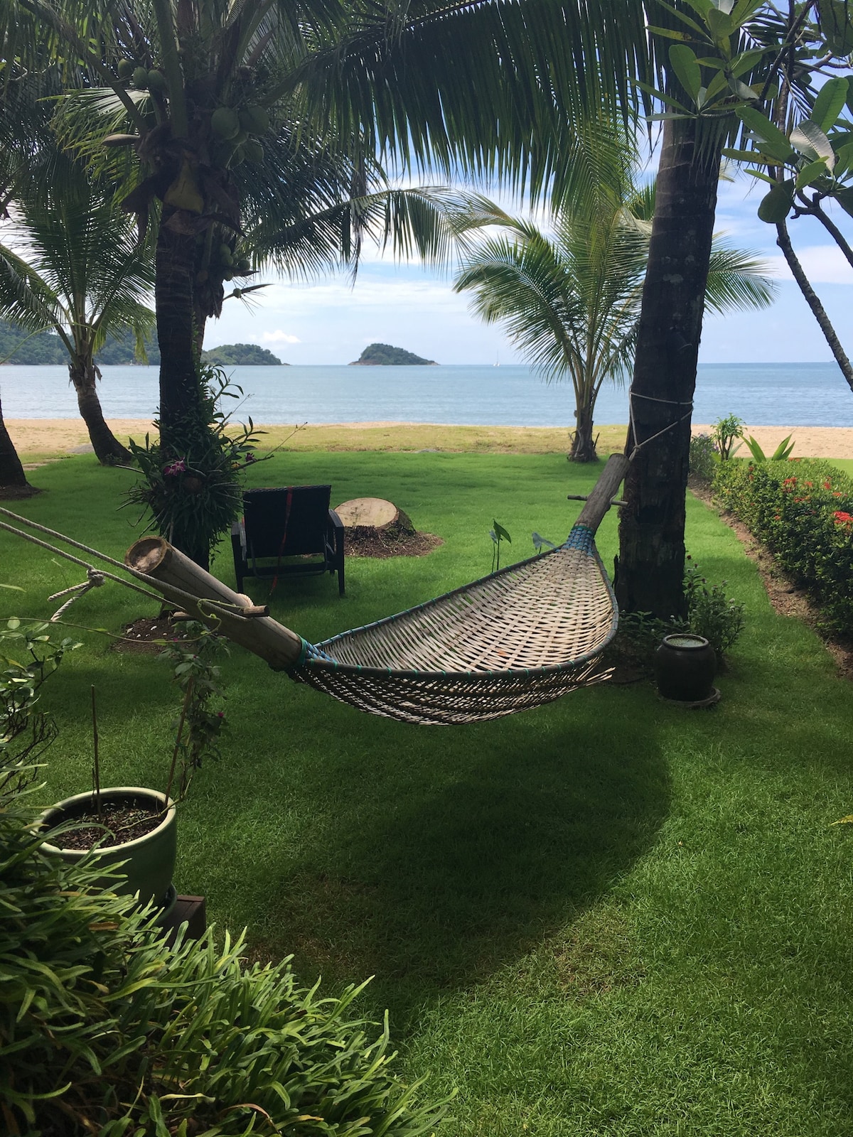 Siam Royal View, Koh Chang'da denize sıfır ev! Bu güzel evin plaja, özel havuza doğrudan erişimi vardır ve 3 banyolu 4 yatak odasına sahiptir. Kendi evinizin konforunda okyanusun muhteşem manzarasının tadını çıkarabilirsiniz. Ev, 2 restoranı olan aile dostu bir plaj kulübüne yakındır. Güzel manzaranın tadını çıkarırken lezzetli yemeklerin tadını çıkarın. Bu ev dinlenmek ve doğanın güzelliğinin tadını çıkarmak isteyenler için mükemmeldir. Aile ve arkadaşlarla vakit geçirebileceğiniz mükemmel bir yer