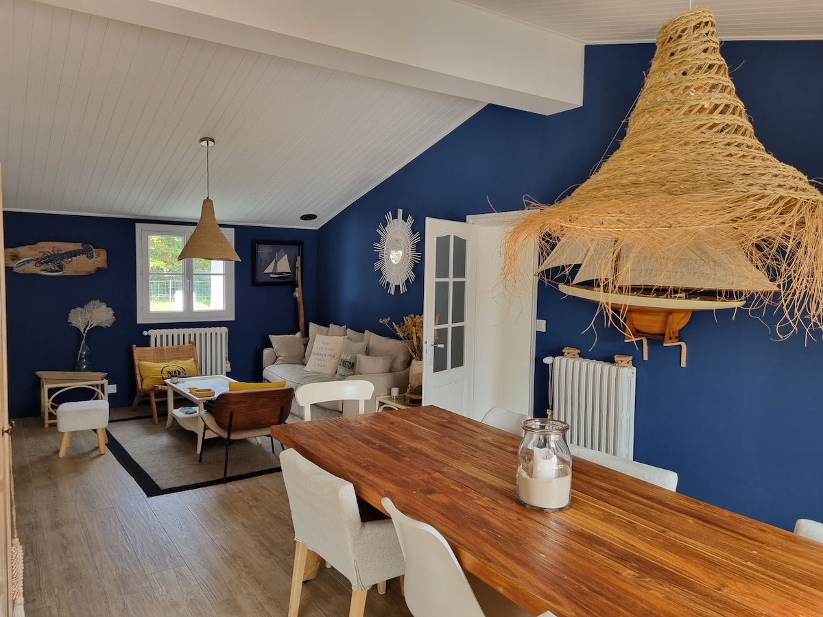 Maison située dans un environnement exceptionnel à seulement 200 m de la plage. Avec d'un côté la forêt domaniale et de l'autre l'accès à la plage, la maison invite à la détente dans une atmosphère calme et chaleureuse. Un endroit idéal pour se ressourcer... NOUVEAUTÉ 2023 : Poêle à granule pour vos séjours hivernaux ! Piscine extérieure chauffée du 30 mai au 19 septembre 2026.