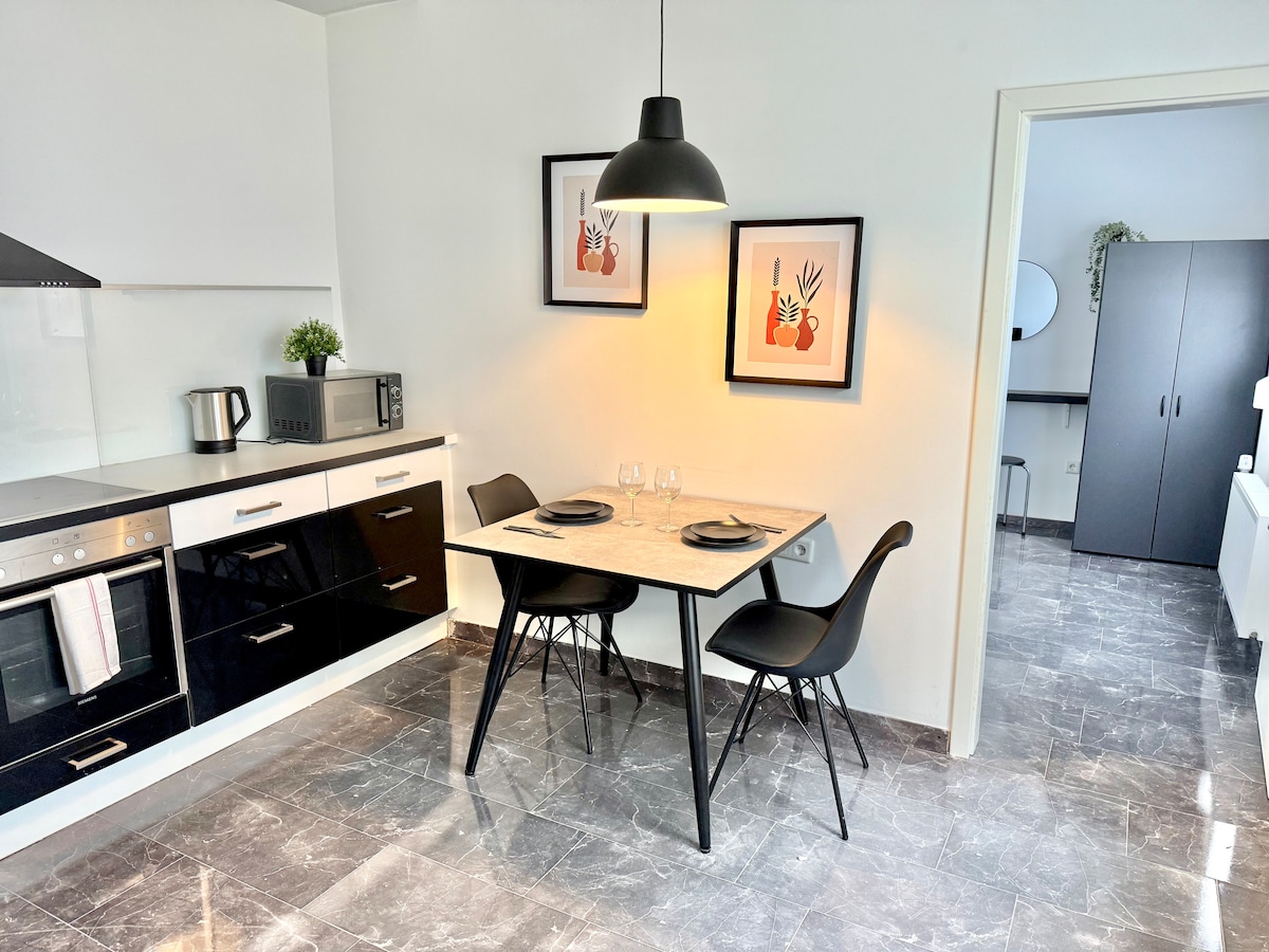 Modern, aydınlık ve çiftler veya yalnız seyahat edenler için ideal. ✔️ Çift kişilik yatak (180 x 200 cm) ✔️ Tam donanımlı mutfak Gün ışığı alan ve saç kurutma makinesi bulunan✔️ modern banyo. Boy aynalı ve ayakkabı dolaplı✔️ koridor. ✔️ Şık siyah mobilyalarla döşenmiş ✔️ Kahve makinesi ✔️ Akıllı TV ve 500 Mbit WiFi Sokakta ✔️ ücretsiz park yeri. Ana istasyona✔️ sadece 8 dakika yürüme mesafesinde. ✔️ Yakınlarda kafeler, mağazalar ve restoranlar. ✔️ Kendi kendine giriş Mönchengladbach ziyaretinizi sabırsızlıkla bekliyoruz!