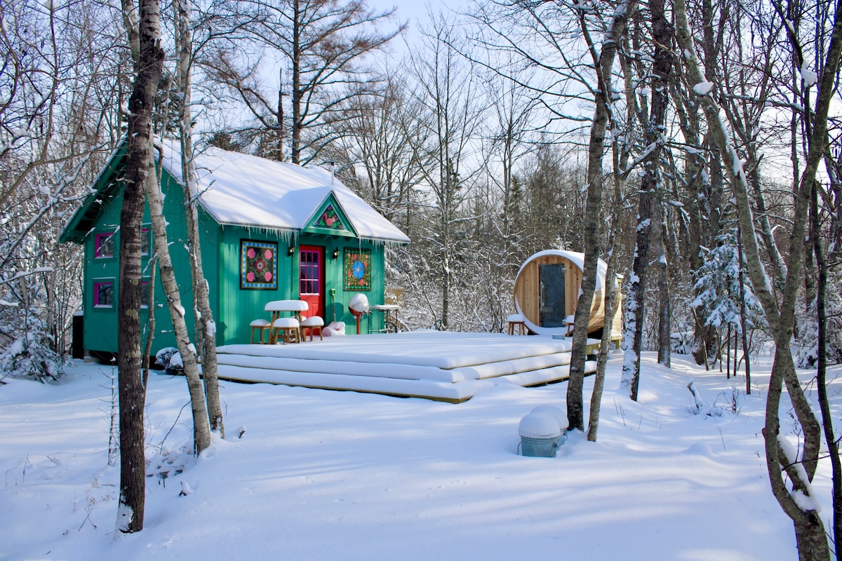 Our family is excited to share our tiny house with you! Located on our artist collective farm, this is our favorite place on earth. It’s off grid, cottage core, and has a beautiful & fragrant cedar sauna. We are 27 minutes from Acadia National Park and surrounded by truly gorgeous local beaches. We offer super comfy beds, an outdoor shower, twinkle lights, summer nights filled with fireflies, bright maples in the fall, and cozy winter movie nights in a bed alcove like on a boat.