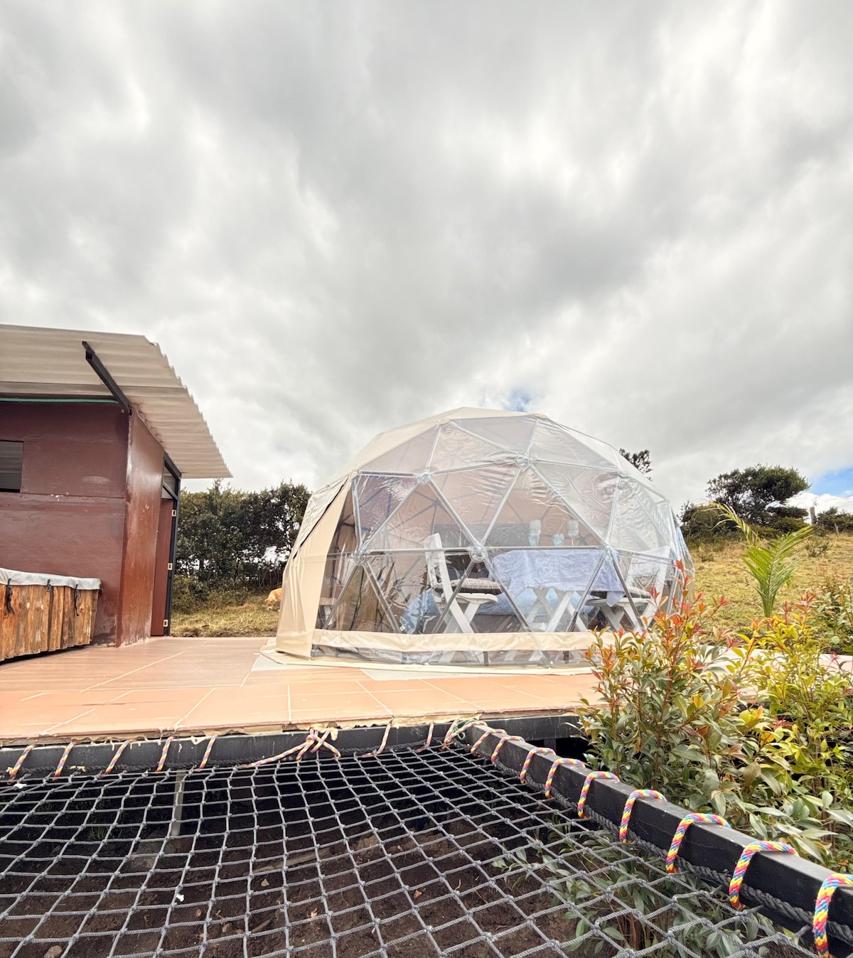 Monserrate'den (Bogota) arabayla sadece 45 dakika mesafededir. Choachí'den kısa bir süre önce, bölgenin lezzetli sıcak havasının (yaklaşık 20º) ve doğayla bağlantının tadını çıkaran bir yer olan Cúspide. Rezervasyonlarımız, eşsiz manzaralı, kubbenizde benzersiz bir manzaraya sahip kahvaltıyı içerir. Cúspide'da bir gece: * Queen Yatak * Sıcak Su ile Kapalı Banyo * Restoranda kahvaltı * Sıcak su seti (kahve ve çay) * Yakacak odun * Dağlık manzaranın ayrıcalıklı manzarasına sahip güverte ve dış teras