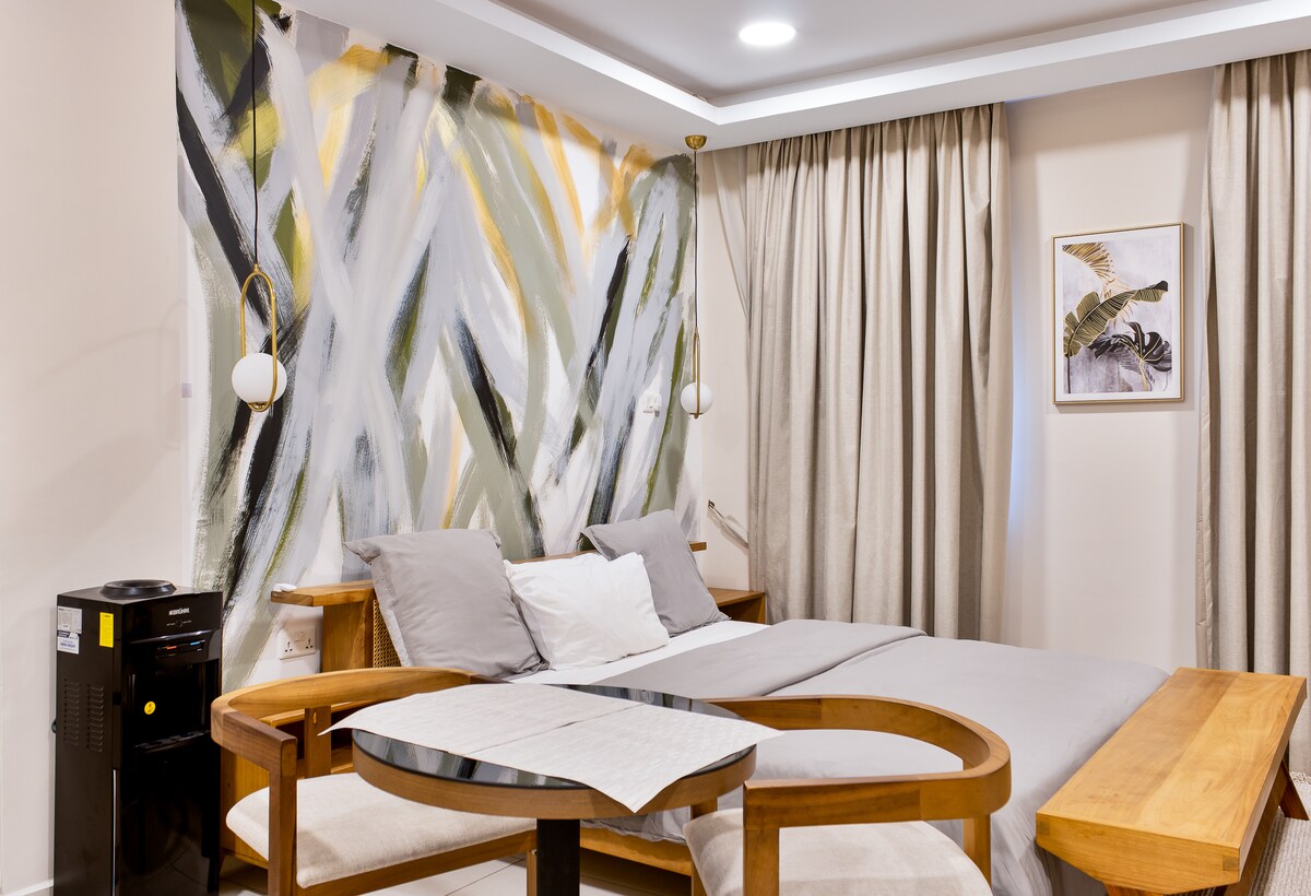 Tek başına seyahat edenler ve çiftler için mükemmel, son derece konforlu, kusursuz temiz dairemizde cömert bir konaklamanın keyfini çıkarın. Pelüş nevresimler, tam DSTV, Netflix ve ses kontrollü akıllı aydınlatma sunan mekânımız eşsiz bir rahatlama ve rahatlık sunuyor. Kotoka Uluslararası Havaalanı'na sadece 15 dakika ve Akra'daki en iyi yemek noktalarına kısa bir yürüyüş mesafesinde yer alan bu yer, şehri keşfetmek için ideal bir merkezdir.