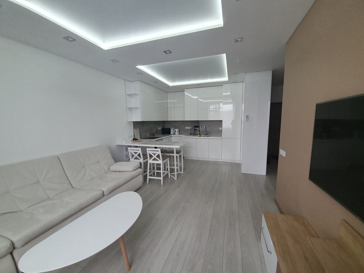 Bu benzersiz mekânın kendine özgü bir tarzı var. Tasarımcı tadilatı, yeni mobilyaları ve yeni aletleri olan daire, konforlu bir konaklama için ihtiyacınız olan her şeye sahiptir. Lüks tadilat kaliteli malzemelerden yapılmıştır ve en küçük ayrıntısına kadar düşünülmüştür. Mükemmel altyapıya sahip harika bir alan. Bir sürü dükkan, kafe, restoran. Yürüme mesafesinde bir klinik "Dobrobut" vardır. Sokağın karşısında çocuklar için eğlence sunan bir park alanı vardır. Yakınlarda NOVUS HİPERMARKETİ VAR
