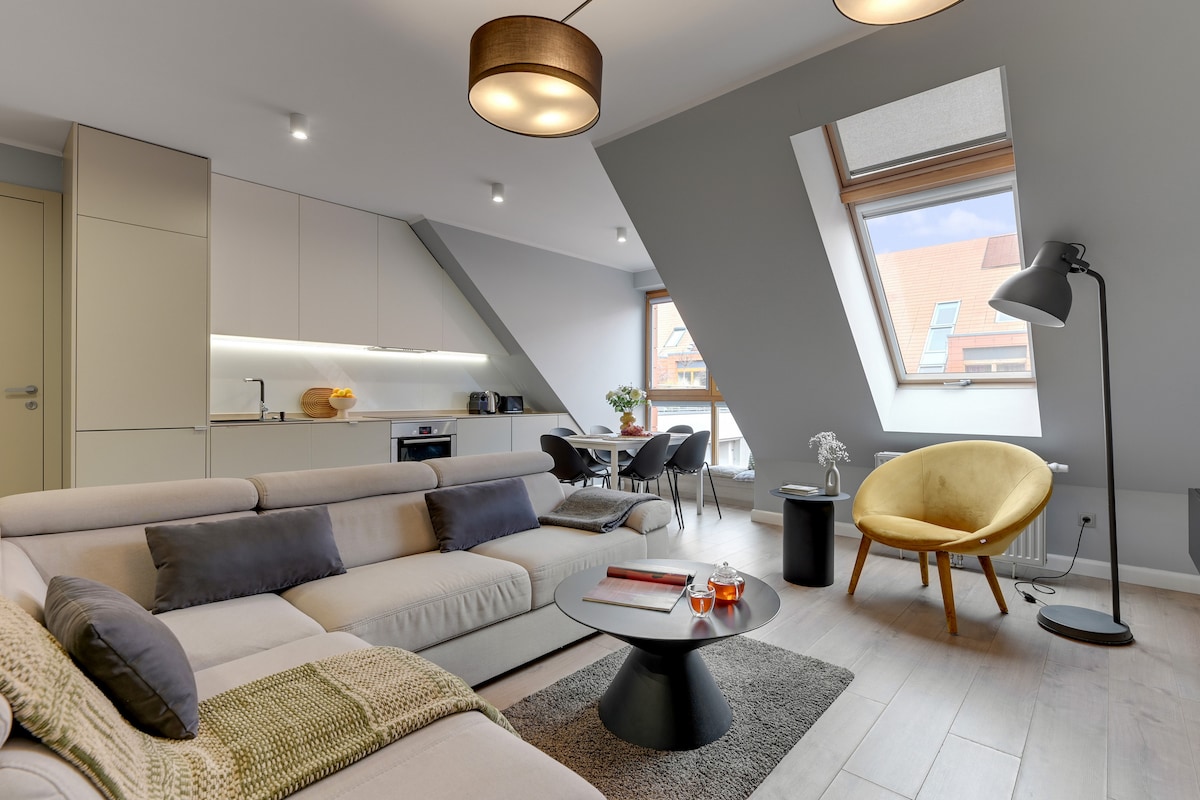 Şehri keşfetmekle geçen tam bir günün ardından kartpostal mükemmel manzaraları, üst düzey konforu ve uygun bir rahatlama dozunu birleştirebilir misiniz? Evet, yapabilirsiniz ve hepsini konforun sadece bir lüks değil, aynı zamanda bir gereklilik olduğu Chmielna 63 'teki modern binanın en üst katında bulabilirsiniz. Bu şık çatı katı, uyuyacak bir yerden çok daha fazlasıdır. Benzersiz ihtiyaçlarınızı karşılayabilecek çok yönlü bir alandır. Ayrıca, Gdańsk'ın Eski Şehir silüetinin nefes kesici manzarasına sahip geniş bir özel terasa sahiptir.