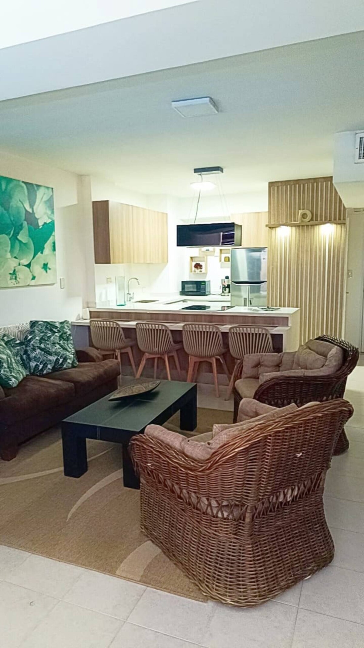 Disfruta de la maravillosa vista que te ofrece este apartamento frente al mar Caribe ✨ El apartamento cuenta con todo lo necesario para que tengas una estancia agradable; Wifi de fibra óptica, Tv Smart, cocina equipada, aire acondicionado, agua caliente, 3 tanques de agua y mas... 📍Situado en primera linea de playa a pocos pasos del mar. Edificio con piscina. Ubicado en un edificio tranquilo cerca de zonas comerciales, playas y sitios de interés.