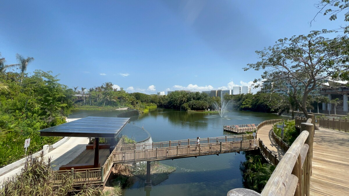55 m2'lik inanılmaz daire, tam donanımlı (Elektrikli ızgara, Fırın, Mikro, kahve makinesi, blender, ekmek kızartma makinesi, bulaşık makinesi) ve merkezi klima. Marítima Golf'te 4 kişi için ideal ve süper konforlu, Fracc içinde mükemmel bir konum. Flamingolar, muhteşem deniz ve golf sahası manzarasına sahiptir. HAYVAN DOSTU DEĞİL 🚫 Banyo ve duşlu özel plaj erişimimiz bulunmaktadır. PB ve çatı katında 2 havuz, körfez ve golf sahasının muhteşem manzarasına sahiptir. Süper donanımlı spor salonu