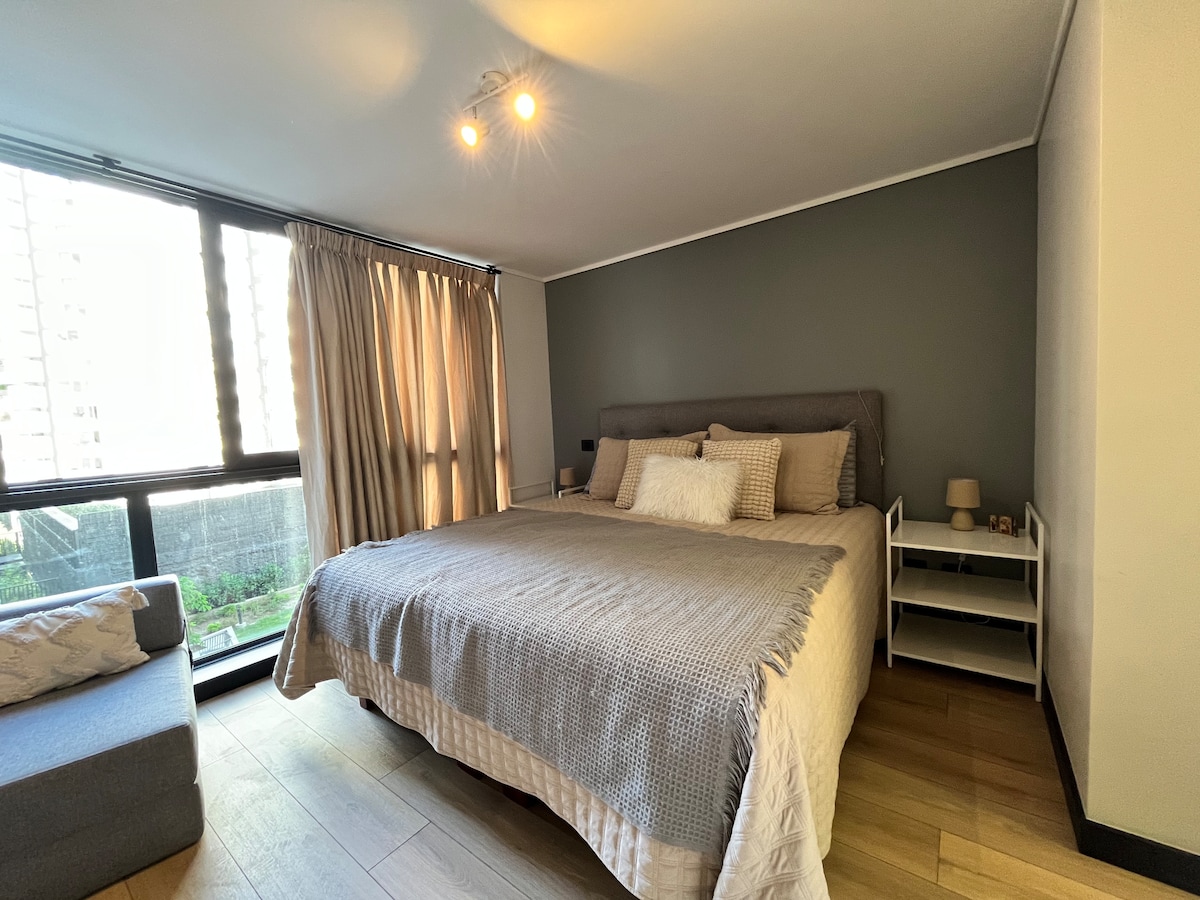 Comodidad y estilo con gran ubicación. Departamento nuevo, decorado con excelente gusto y detalles que invitan a sentirse bien. Cuenta con terraza y vista a la cordillera, estacionamiento, dos habitaciones, escritorio, A/C, WiFi rápido, Smart TV y cocina full equipada, gym.Ubicado en Ñuñoa, zona tranquila y segura, a pasos del metro y Mall Plaza Egaña, rodeado de gastronomía, tiendas, clínicas y servicios. Ideal para viajeros exigentes que buscan descansar, trabajar cómodos o explorar Santiago!