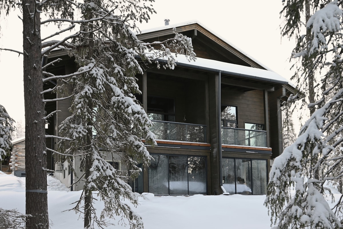 Kuzey Işıkları bölgesindeki yeni modern villa, tatiller için harika bir ortam sunuyor. Levi'nin şehir merkezindeki hizmetlere ve en yakın yamaca 1 km'den daha kısa bir mesafede. Kayak parkurları yaklaşık 500 metre uzaklıktadır ve kızak evin arka bahçesinden geçer. Villanın her biri iki yatağı olan 3 mh, görülecek yerden bir çatı katı "ana yatak odası" bulunan bir yatak odası, alt katta sürülebilir bir kanepesi olan büyük bir spor salonu/film odası vardır. Ayrıca bir sauna ve şömine de bulunmaktadır. Villada modern aletler ve teknoloji var.