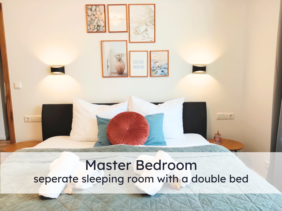 Nürnberg'in (Zerzabelshof) en iyi konumunda✨ yeni yenilenmiş 3 yatak odalı daire: sessiz, yeşil ve lüks! Çift kişilik yataklı 1 yatak odası, ayrı ikinci yatak odasında 2 tek kişilik yatak, büyük kanepeli ve TV'li 1 oturma odası, modern mutfak (dahil). Bulaşık makinesi, kahve makinesi, çamaşır makinesi), kırsal manzaralı geniş balkon🌿. Fuar, tren istasyonu, hayvanat bahçesi, stadyum ve şehir merkezi 5-15 dakika içinde! Kapının hemen dışında🏙️ alışveriş - şehir gezileri, ticaret fuarı ziyaretleri veya aile tatilleri için ideal.
