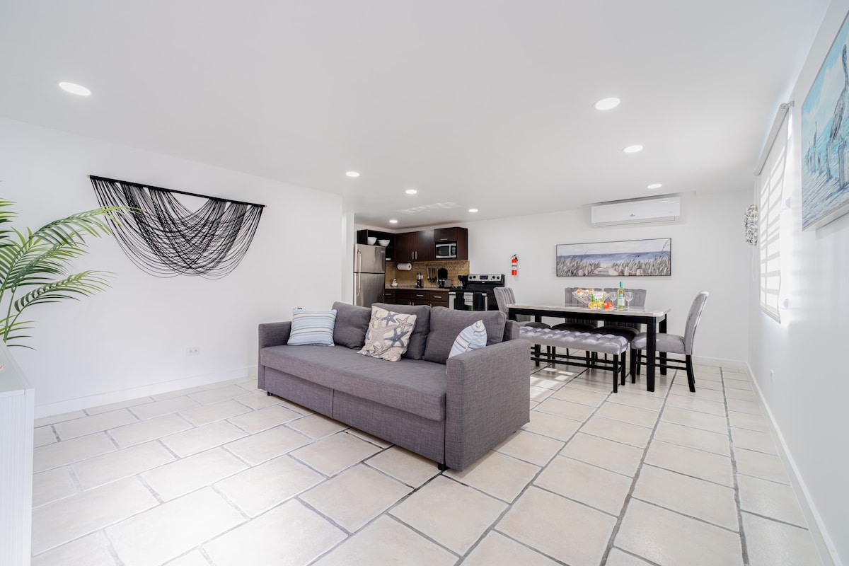 Ocean Park Plajı'na sadece 5 dakika yürüme mesafesinde ve canlı Calle Loíza'ya yarım blok mesafede, yenilenmiş 1 yatak odalı evimizde rahat bir konaklama deneyimi yaşayın. Ücretsiz kapalı otopark, modern mutfak, çamaşır makinesi, kurutucu, klima, tavan vantilatörleri ve özel çalışma alanının keyfini çıkarın. İki TV, mükemmel internet ve plaj malzemeleri dahil olmak üzere ihtiyacınız olan her şeye sahip olacaksınız. Yerel kültüre kendinizi kaptırın ve yakındaki turistik yerleri rahatça keşfedin. Araç kiralamak istemiyorsanız kolayca yürüyebilir veya Uber kullanabilirsiniz.