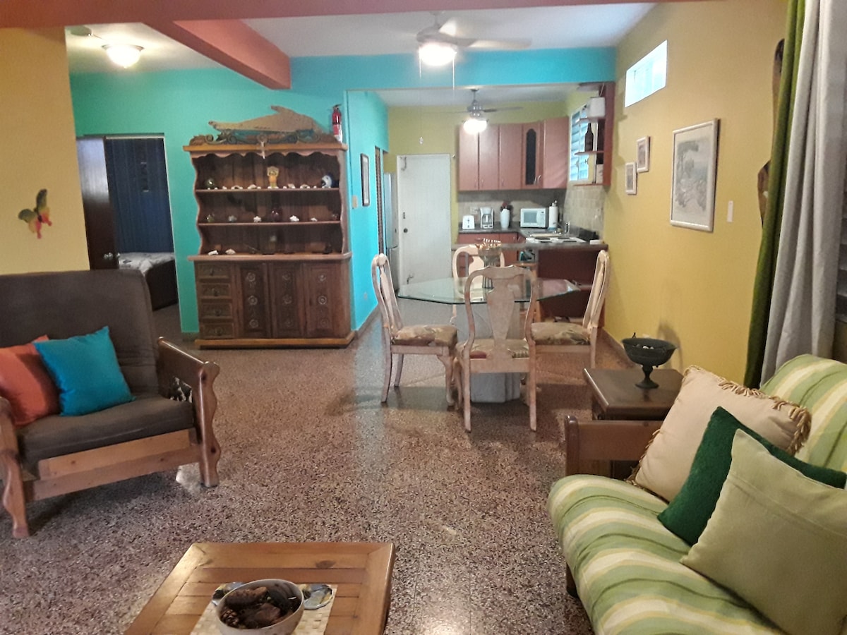 Beautiful and modern space, perfect for a couple or a group of four people. Strategically located five minutes from the airport and 10 minutes from San Juan. Come to Puerto Rico and enjoy the beaches, its people and much more. The apartment consists of a living room with a sofa bed queen size, a beautiful room with a queen size bed, two air conditioning units, two tvs and a beautiful, modern kitchen with all utensils for cook, private parking and balcony for share with your family.