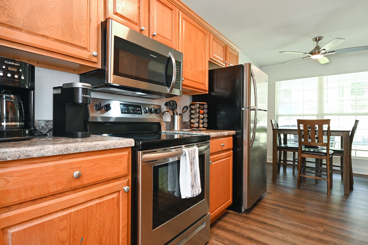 Overlooking UGA’s N. Campus, this is the perfect spot for families or adult getaways. With newly renovated bathrooms, paint, and furniture, this modern and sleek condo is a win. The 2 bedrooms each have a queen bed; the living room has a queen sleeper sofa, and there is a small bunk closet - perfect for kids! It sleeps up to 8, but designed for couples or families; not as a place to party. The bottom level is in the final stages of the Mini Target construction, which should be complete in April.