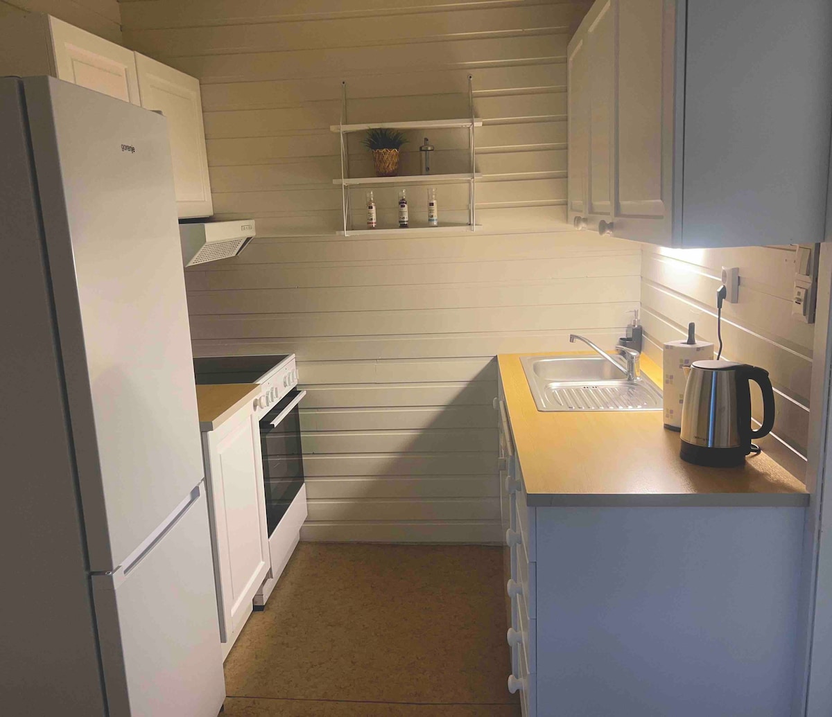 Burası şehir sokaklarından, gürültüden ve koşuşturmacadan uzak bir yerdir. Bölge, fiyortlara ve dağlara bakan kırsal bir bölgedir. Küçük bir dik yol ve birkaç dönüş sizi burada, doğanın bol olduğu küçük bir rustik evde sessiz ve huzurlu bir yere götürür. Daire, basit yemekler yapmak için temel olanakları içeren ve kolay mobilyalar içeren bir mutfağa sahip küçük bir bölümle dekore edilmiştir. Duşlu fayanslı bir banyosu vardır. Kablosuz internet bağlantısı.