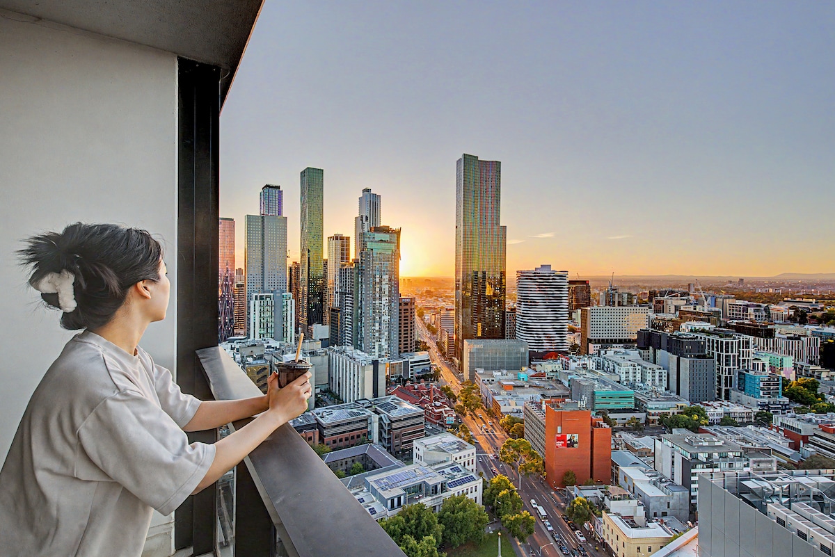 Melbourne şehir merkezinin göbeğindedir. Modern şık 2 yatak/2 banyo (2 muson duşu ve özel Japon tarzı jakuzi). Melbourne'un en ikonik binasında, sonsuz panoramik silüet manzaralarıyla Melb şehir silüetine bakan 53. katta alt çatı katı tatil köyü tarzı daire. Güvenli otopark, sınırsız yüksek hızlı kablosuz internet bağlantısı, kablolu TV, havuz, spor salonları, saunalar, spa, barbekü, çamaşır makinesi/kurutucu, paslanmaz çelik cihazlar ve taş tezgahlar ve mutfak adası, Nespresso ve barista kahve makineleri, 3 TV.