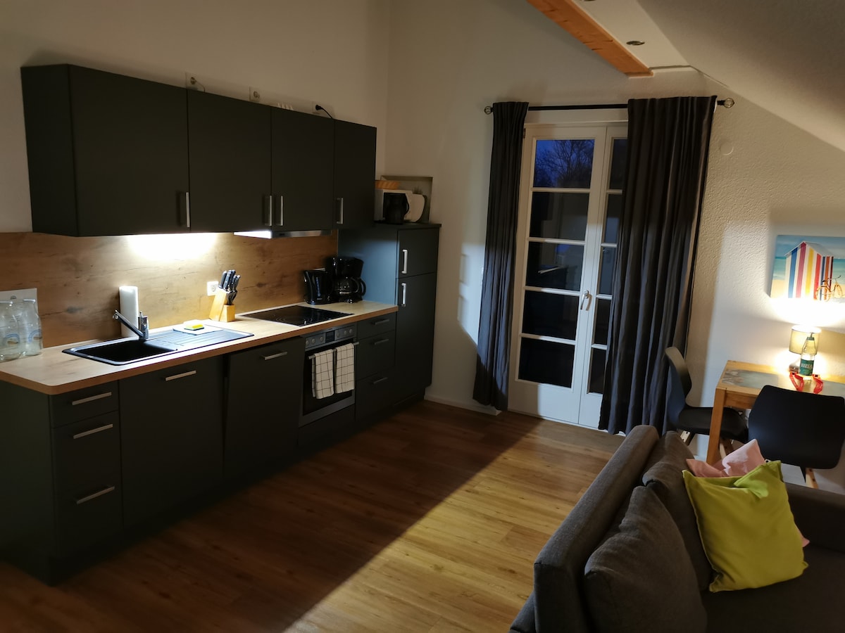 Güzel tarlalar ve yeşillikler arasında dinlenmek için huzurlu bir yer arıyorsanız burası tam size göre. Modern daire, geniş bir yaşam/yemek alanından, çift kişilik yataklı bir yatak odasından ve geniş bir banyodan oluşmaktadır. Sauna ve bisiklet bulunan bahçe evi de küçük bir ücret karşılığında kullanılabilir. Büyüleyici Oldenburg şehri (15 km uzaklıkta) alışveriş yapmak için harika bir yerdir ve aynı zamanda çeşitli kültürel etkinlikleri ve gece hayatıyla da tanınır.
