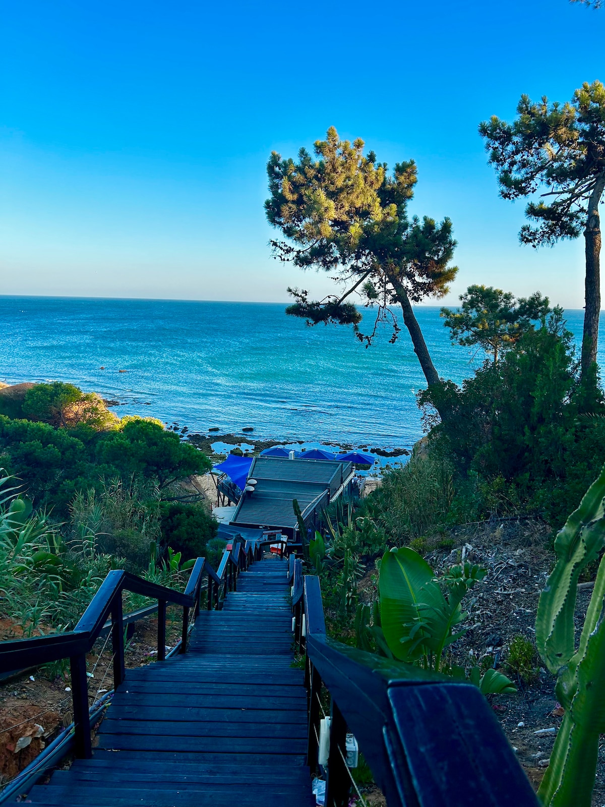 Romantik, aydınlık ve şık 2 yatak odalı ve 2 banyolu daire, tüm pencerelerden muhteşem okyanus manzarası, Albufeira'nın göbeğinde, Peneco Plajı'na 200 metre ve Pescadores Plajı'na 600 metre uzaklıkta. Güçlü kablosuz internet bağlantısı, klima ve balkon. Çift camlı pencereler ve elektrikli jaluziler. Üst katta açık alan. Barlar, restoranlar ve canlı müzik ile ana meydan 300 m. Dairenin yakınında ücretsiz otopark. Albufeira'nın gerçek merkezinde kalın! Gece hayatı gürültüsü olmadan her şeye yakın en iyi konum.