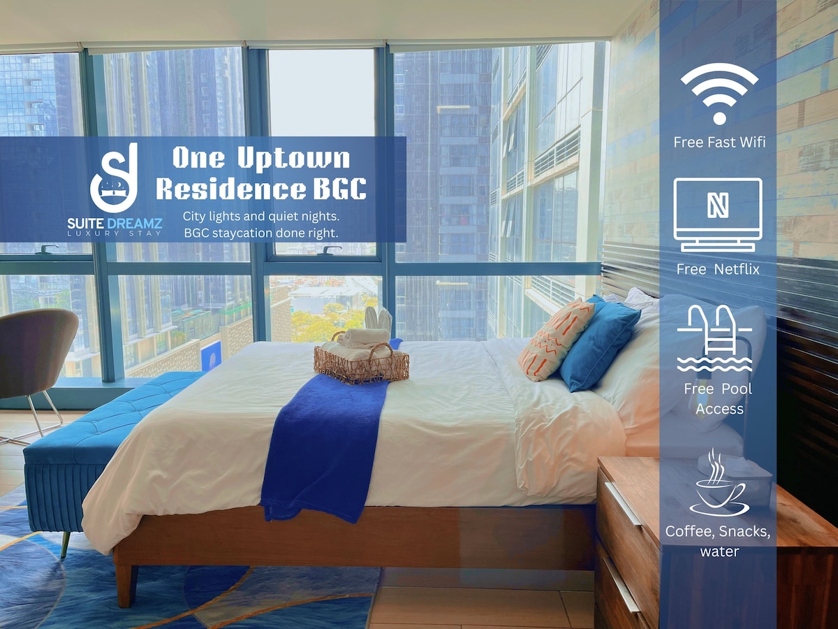 BGC'nin merkezindeki bu lüks konaklamayı rezerve edin. Her şey sadece birkaç adım uzakta. Uptown Parksuites'in etrafında birinci sınıf ofisler ve lüks alışveriş merkezleri bulunur. Uptown Alışveriş Merkezi'nde kozmopolit bir kaçamak yaşayın. Benzersiz yemek ve alışveriş konseptlerini keşfedin. Kapınızın önündeki birinci sınıf barlarda gece boyunca parti yapın. Mid Century Modern yatak odamızda gevşeyin. Queen boy yatak ve ekstra çekyat ile rahatlayın. Konforlar arasında 50 inç akıllı TV, 400 Mbps internet, çalışma alanı ve özel balkon bulunmaktadır.