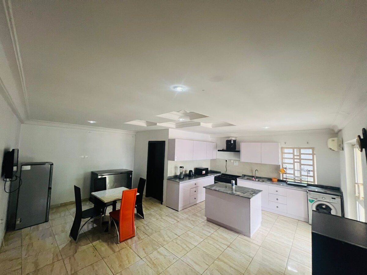 Asaba'da havalimanına, merkez bölgeye, parklara, alışveriş merkezlerine ve hastaneye yakın bir yer arıyorsanız burası tam size göre. Uluslararası havalimanına arabayla iki dakikadan az, merkez bölgeye ve Asaba alışveriş merkezine arabayla beş ila on dakika mesafedeyiz. Bu ev modern olanaklar, iyi donanımlı mutfak, buzdolabı, su ısıtıcısı, Starlink internet, akıllı televizyon ile donatılmıştır ve hepsi zaten kablosuz internet bağlantısına bağlıdır. Ücretsiz araç park yeri, güvenlik için kapalı devre kamera sistemi ve çok daha fazlası.
