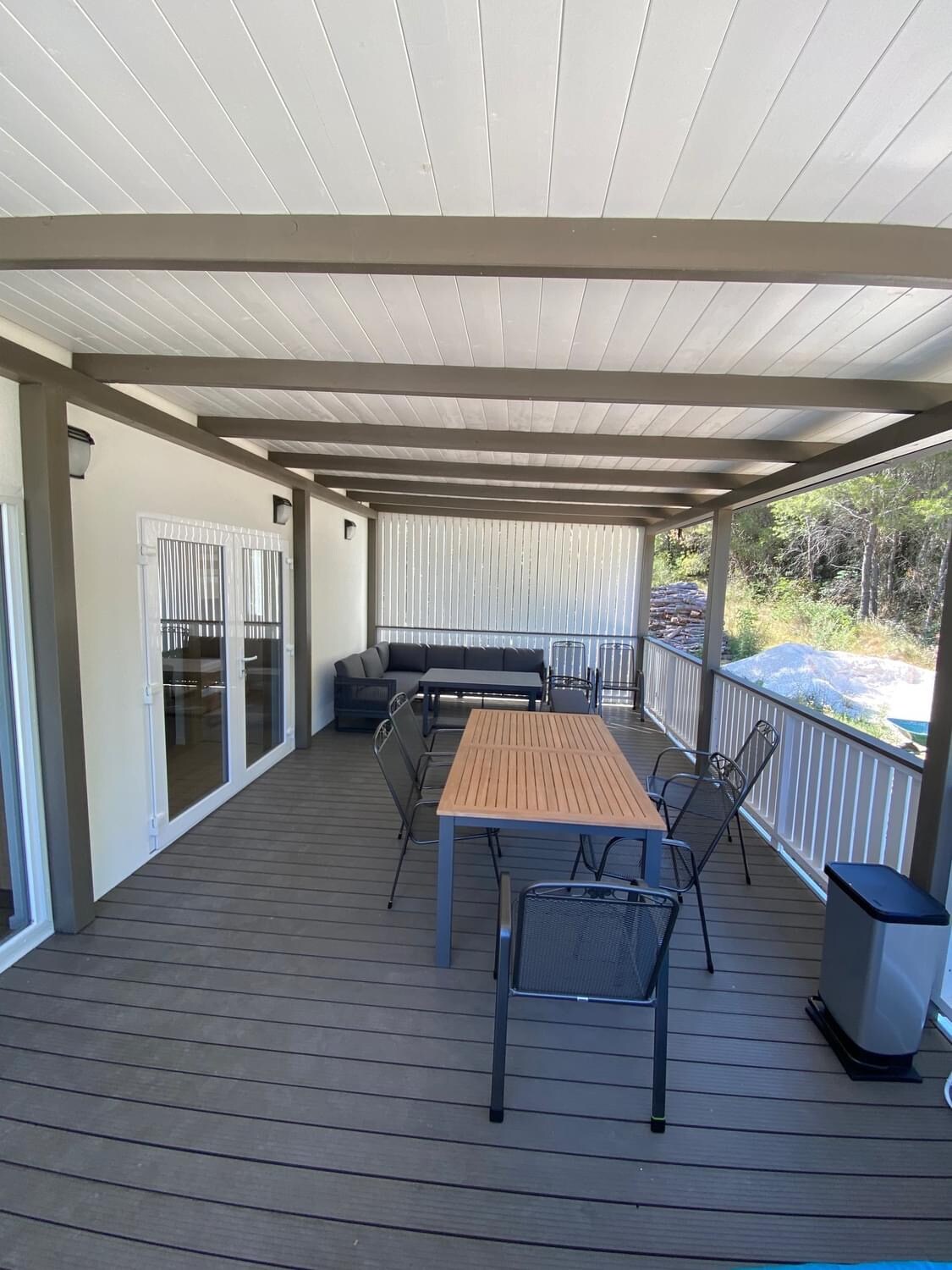 Mobil ev 2 yatak odasından oluşmaktadır ve her odanın tuvaletli kendi banyosu, yemek odalı mutfağı ve deniz ve komşu adalar manzaralı kendi ahşap oturma alanına sahip ahşap bir terası vardır.