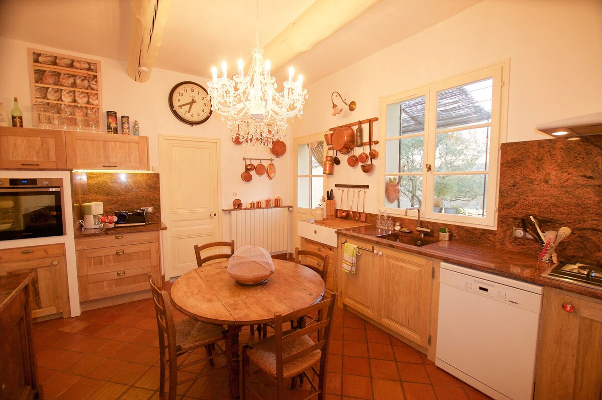 Otantik bir Provence çiftlik evi olan bina, zeytin ağaçları ve meyve bahçeleri arasında 1,6 hektarlık devasa bir arazi üzerine inşa edilmiştir. Bağımsız kır eviniz özel bir batı kanadında bulunmaktadır. Çiftlik evi her birinin konforunu ve samimiyetini sağlamak için tasarlandığından, doğu kanadı sahipleri tarafından işgal edilmektedir. Kapılı ayrı bir girişiniz ve 4'e kadar araç park edebileceğiniz bir otoparkınız, spa ve kendi ısıtmalı havuzunuz olan özel bir bahçeniz var. Konaklamanızın keyfini çıkarmak için mülkte birçok olanağa da erişebilirsiniz.