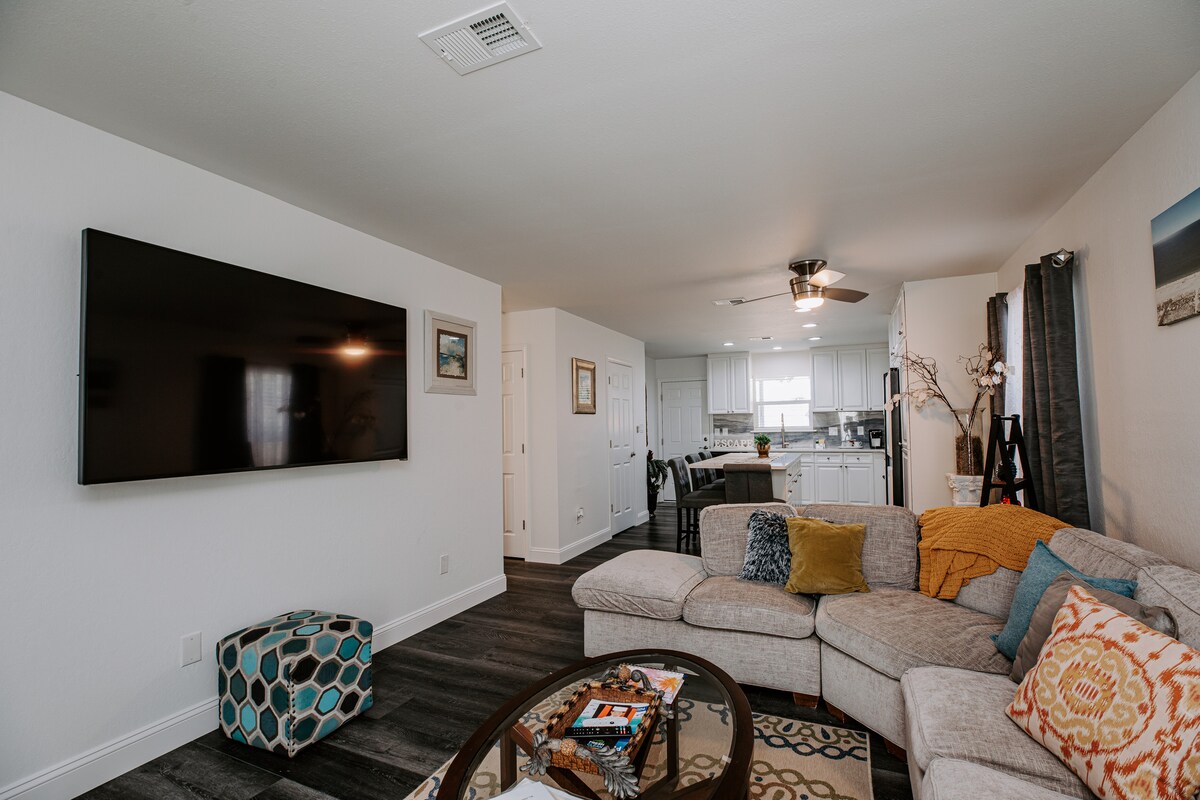 Villa'ya hoş geldiniz! Gulf Breeze'in göbeğinde bulunan modern ve yeni yenilenmiş 2 yataklı 2 banyolu (6 misafir) ev! Pensacola Plajı'nın (3 mil) güzel beyaz kumlarına ve Gulf Breeze alışveriş merkezine yakın merkezi bir konumdadır. Yaz geceleri için tasarlanmış dış mekan oturma alanları ve ışıkları olan özel bir arka verandada huzurlu bir konaklamanın tadını çıkarın. Yepyeni mutfak aletleri ve tam stoklu kahve barı ile rahat kiralık tatil yerimize hoş geldiniz. Tatilinizi ağırlamayı sabırsızlıkla bekliyoruz! - Sonya